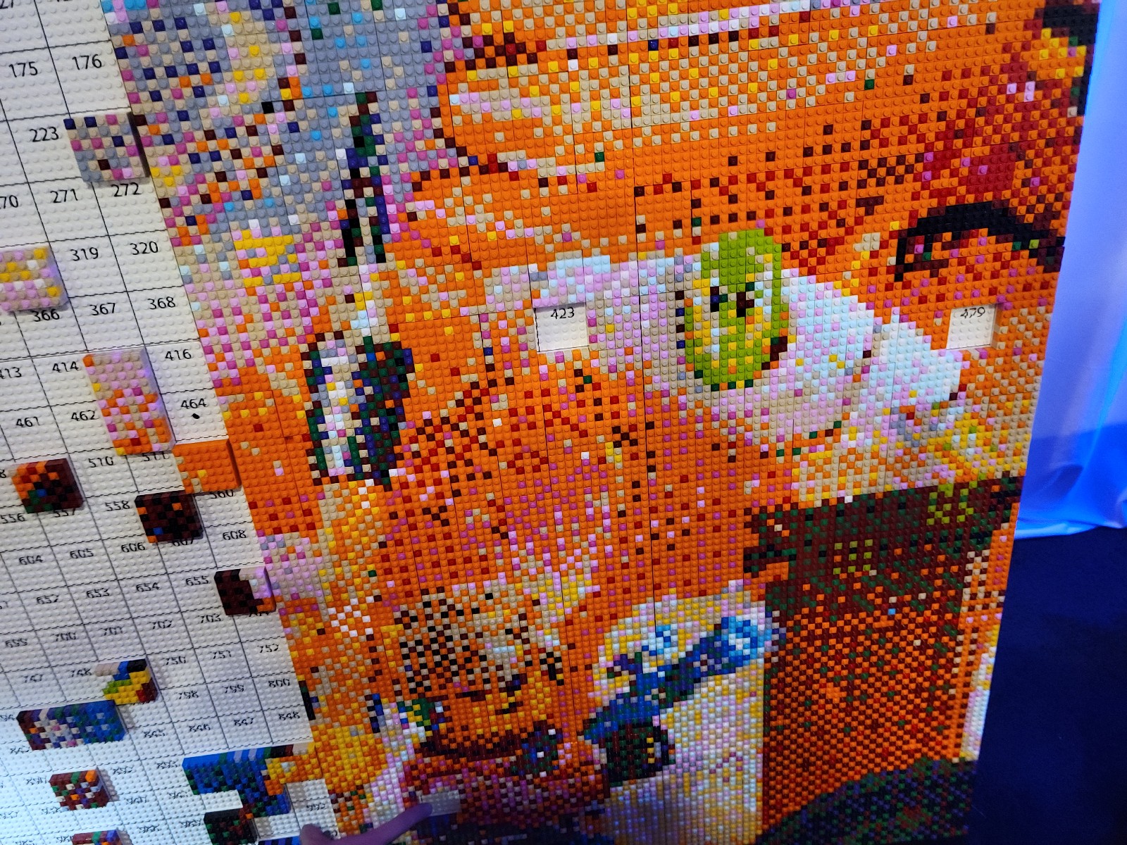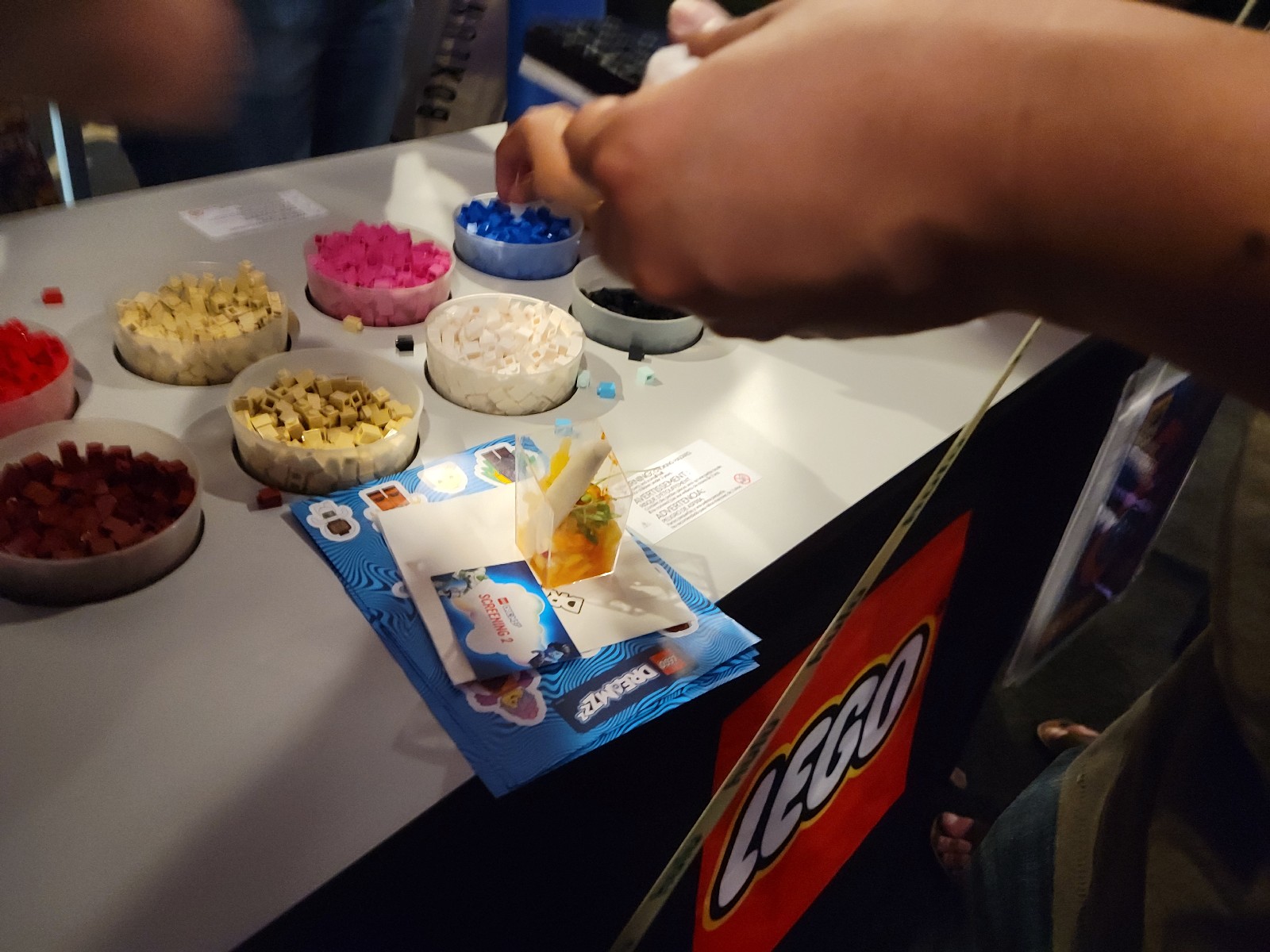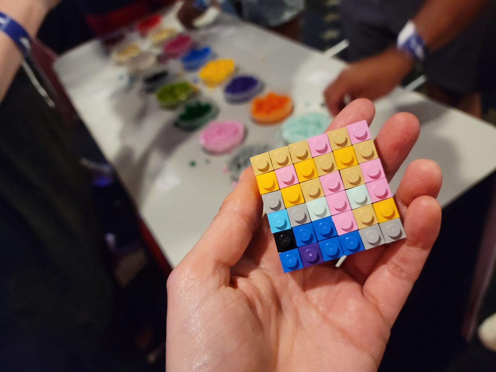 Upon entering, we saw a large LEGO mosaic mural that was being put together. Attendees could choose a square, find the associated colors, and place the correct LEGO colored bricks on the square. Once completed, you would match the number on the back of the square to the number on the mural. Eventually, it would form a full LEGO mosaic mural once all the squares were placed. If anyone has a photo of the completed mosaic mural, it would be great to see the finished product of what we contributed to!