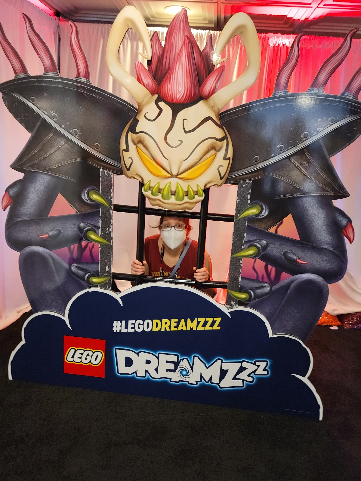 Before long, it was time to head up to the 3rd level for the screening of the LEGO DreamZzz episode. Each attendee was given a box of popcorn to enjoy while watching the screening. There were several rows of folding chairs set up, with blankets and pillows scattered throughout. The voice actors for the show were there, and before the screening started, they introduced themselves, identifying which character they each voiced, then introduced the episode. You can watch LEGO DreamZzz on Prime Video!
