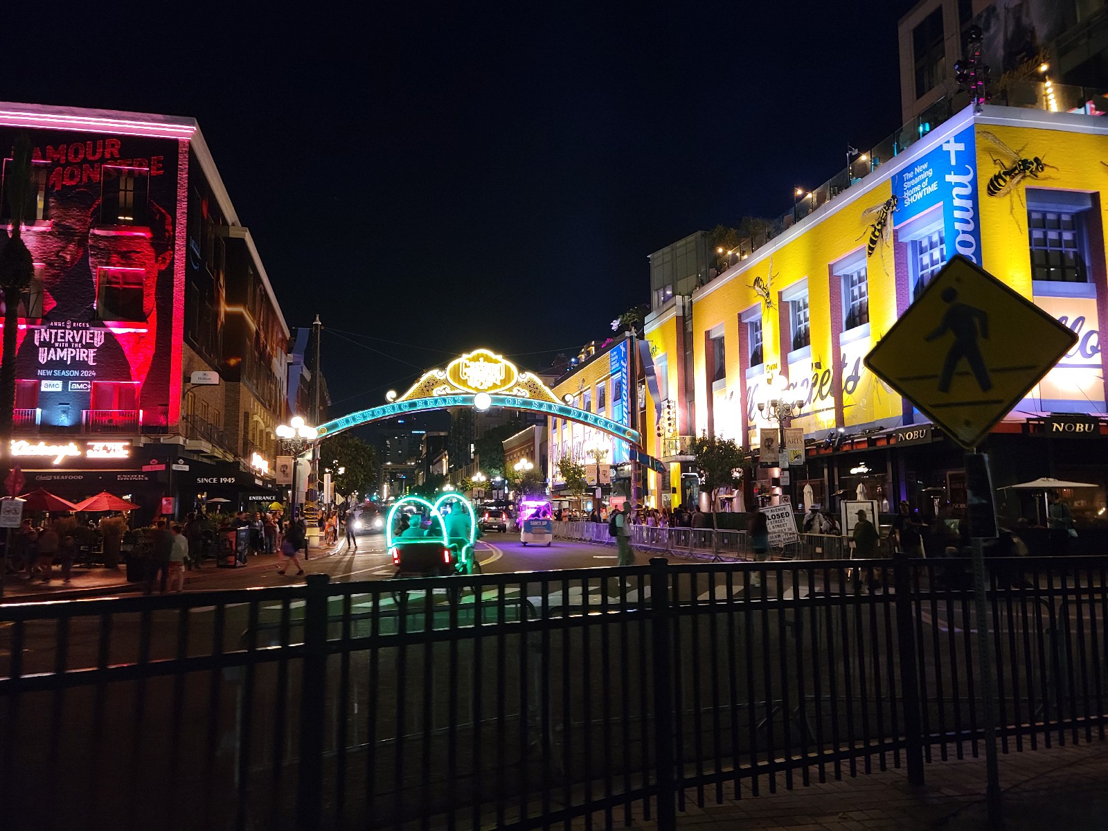 Walking back to our hotel, we got a lovely nighttime view of the San Diego Gaslamp Quarter.