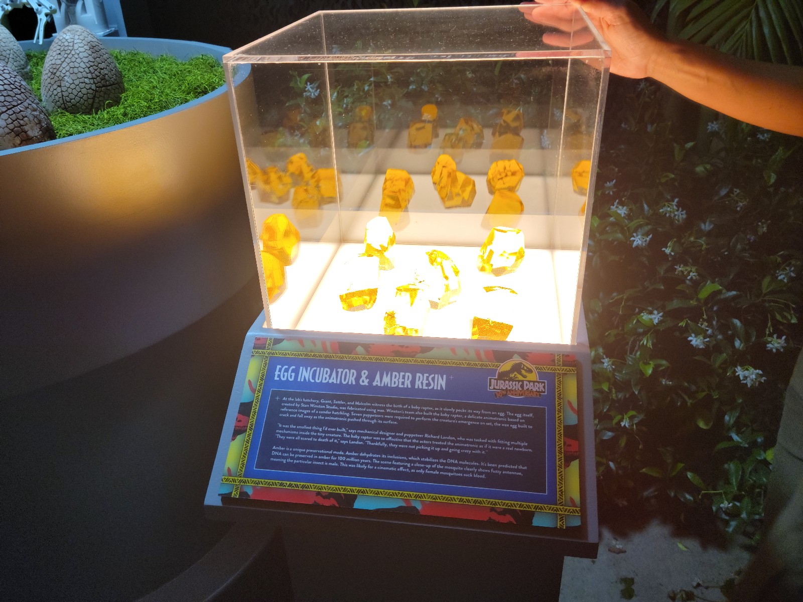Our first stop was to see the amber where the “Dino DNA” had been preserved, as well as some incubated dinosaur eggs. I was hoping to see one hatch, but no such luck!