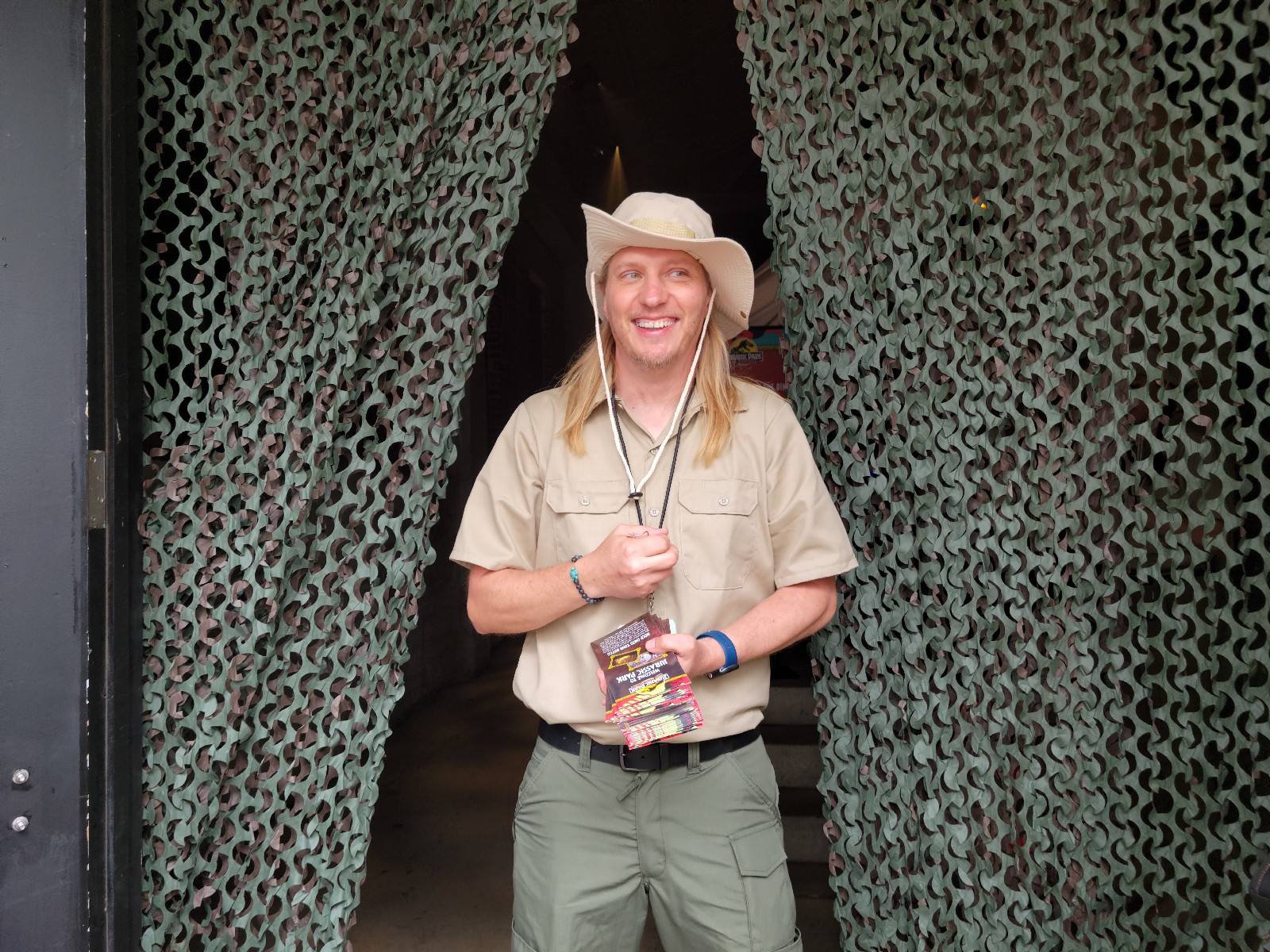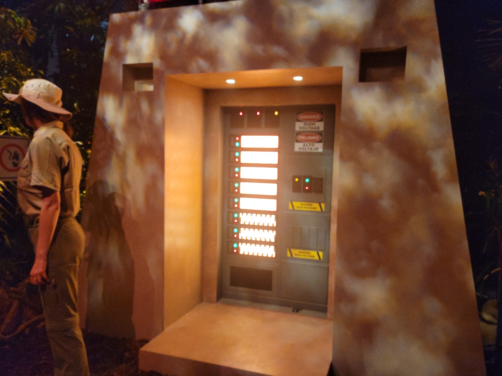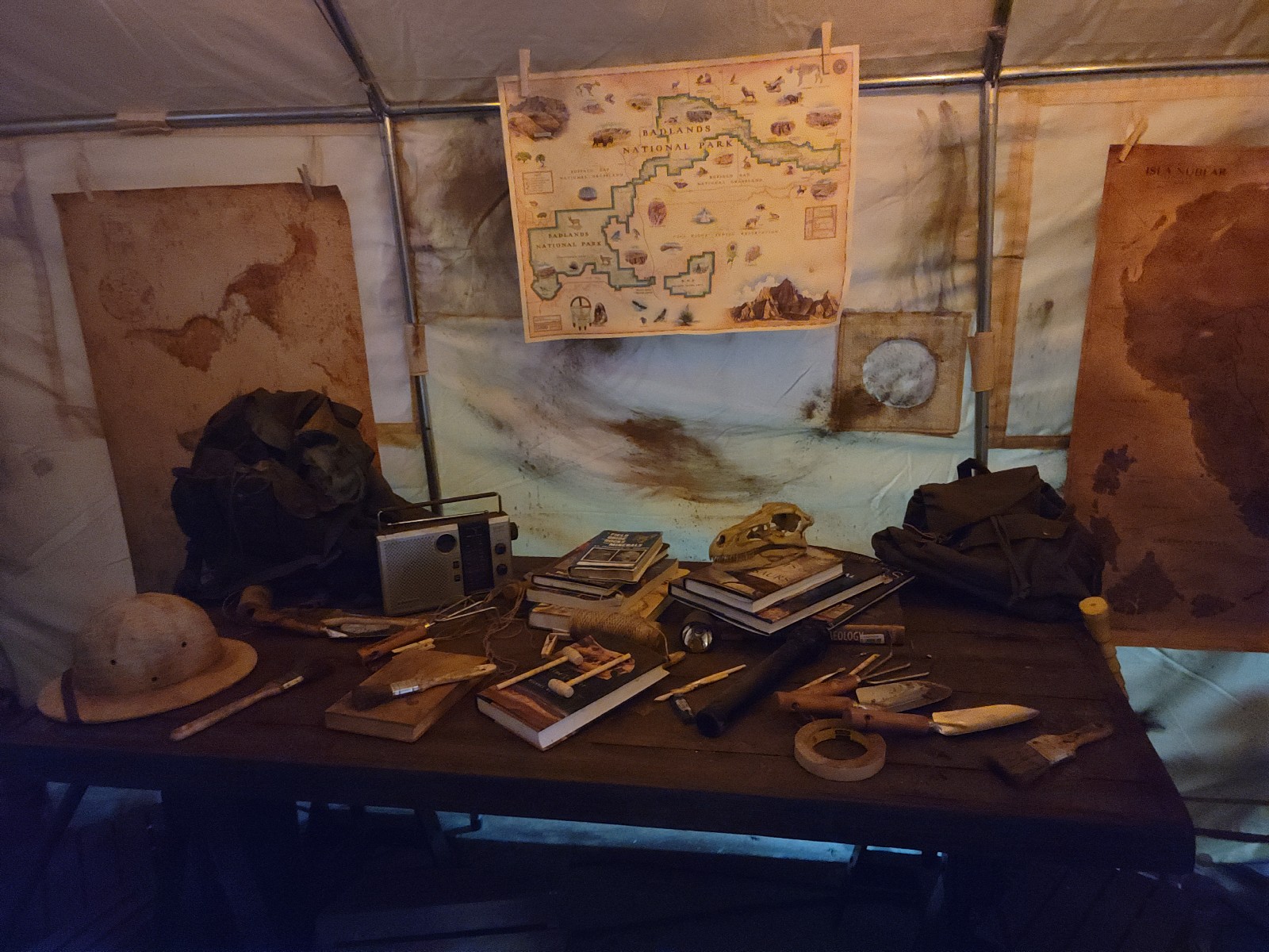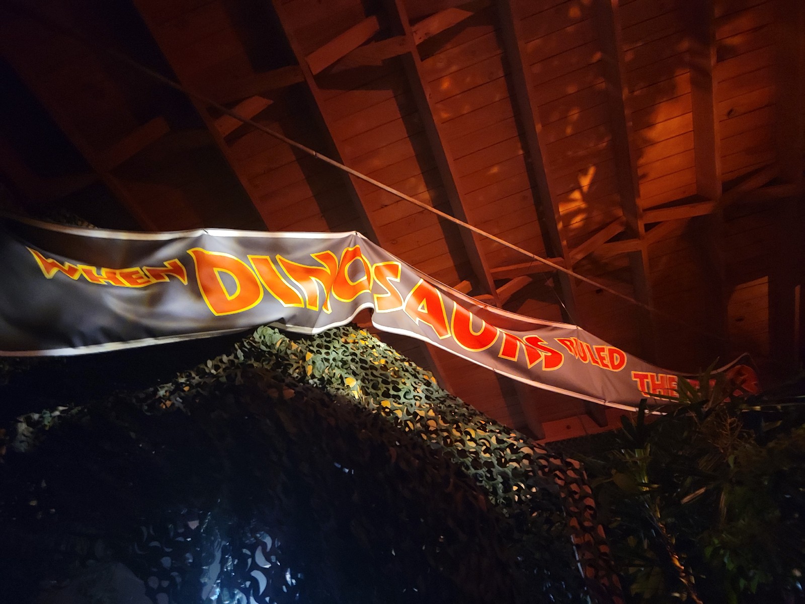Then finally, it was our group’s turn to step into Jurassic Park! I’d say there were about 10 people in our group. We went into a tent that appeared to be an excavation base camp, similar what you see at the beginning of the movie when we meet Alan Grant and Ellie Sattler. We were given a little background info, were warned to watch out for Velociraptors, and then were sent on our way to explore the park!