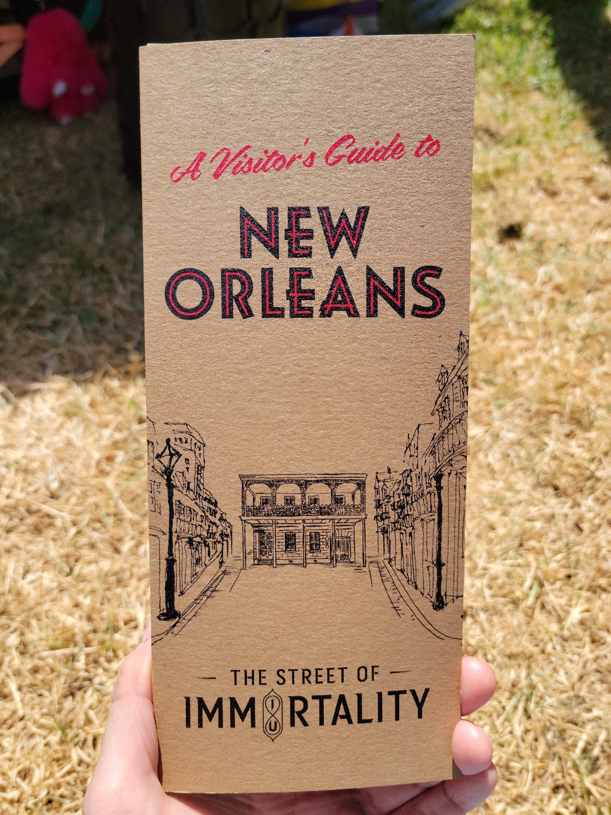 Check in for the event was very smooth and well organized. I can’t speak to how the standby line was handled, but the line management for people with tickets was great. There was a check in desk, and if you had tickets, you were directed to the appropriate line. Upon arriving, the 11:00am group had already gone in (the activation opened at 11:00am), and there were chutes labeled for 11:15am, 11:30am, and 11:45am. I showed our QR code for the tickets to the person handling the 11:30am line, who scanned it, and then put wristbands on us. He also gave us a Visitor’s Guide to New Orleans brochure and made sure to point out that there were 3 stops we needed to make and get stamped. We then joined the back of the 11:30am line, and waited for our turn to go in.