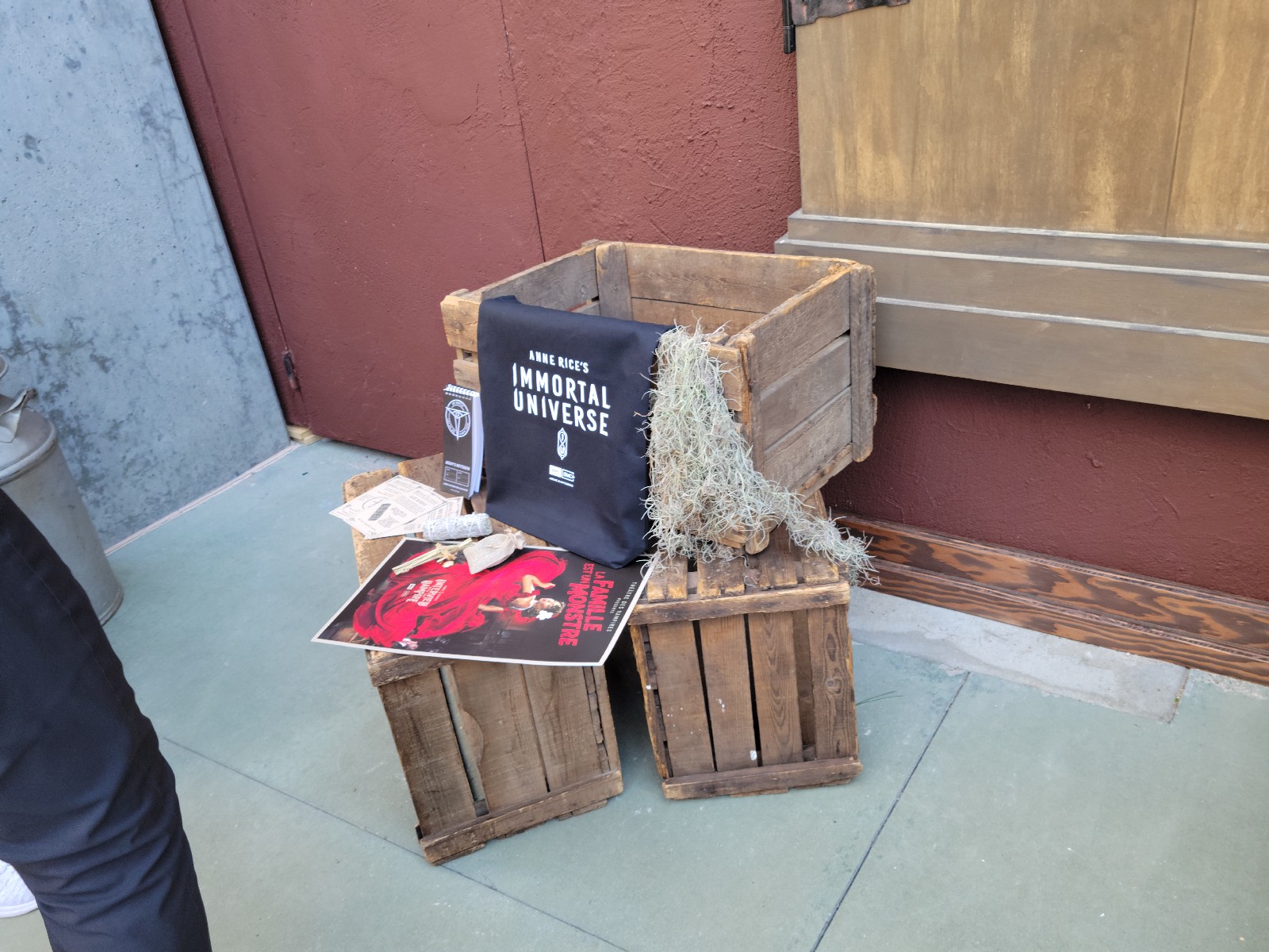When it was our turn, our line handler had us follow him in a single file line to the entrance, where our wristbands were checked and we were given a tote bag reading “Anne Rice’s Immortal Universe.” Although we had been calling it the Interview with the Vampire offsite, it actually also included elements of Mayfair Witches, another AMC series that takes place in, you guessed it, Anne Rice’s Immortal Universe. I had not seen or heard of Mayfair Witches, but I did watch the new Interview with the Vampire series on AMC, and really enjoyed it, so I was pretty excited about having scored tickets for this offsite.