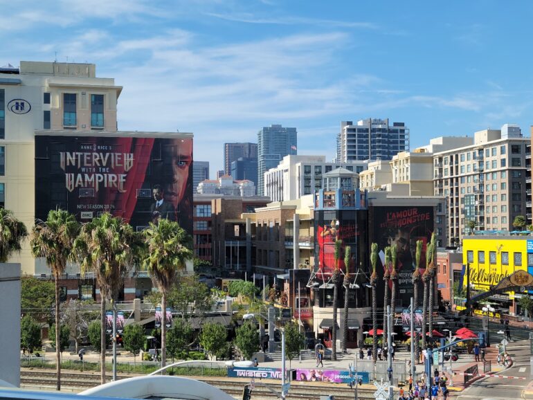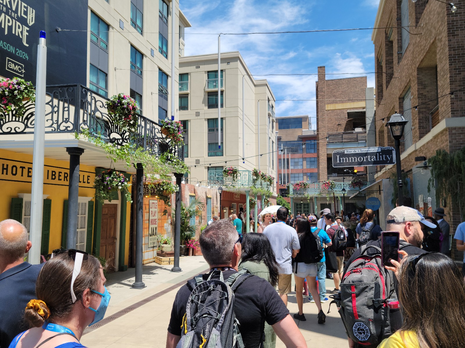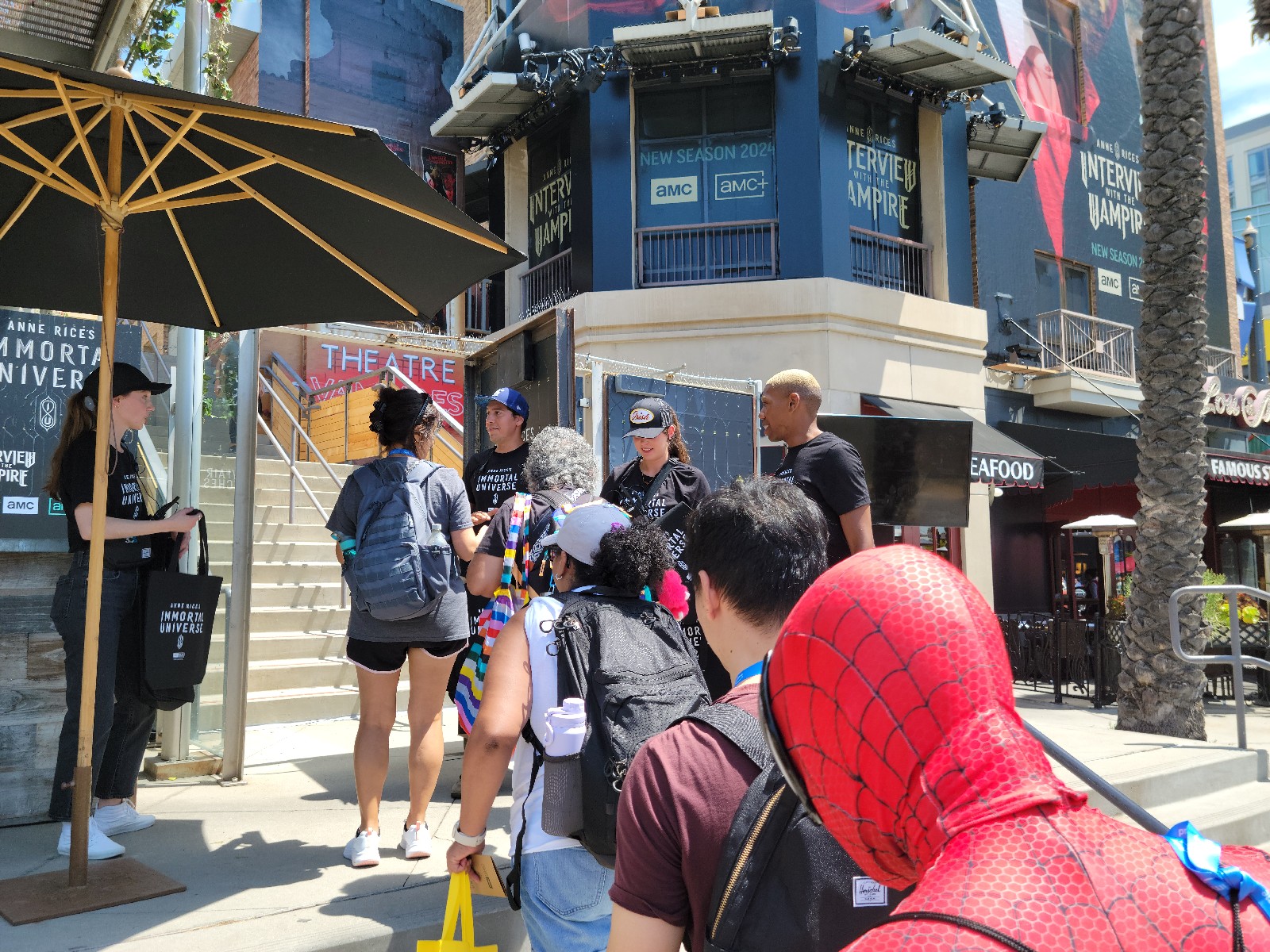 After breakfast, we headed over to the Hilton Gaslamp area, where the Interview with the Vampire offsite was located. Although our tickets were for the 11:30am time slot, it said to get there 15 minutes early to check in, so we gave ourselves plenty of time to walk over from our hotel, the Manchester Grand Hyatt, as you never know how much congestion there will be trying to make it through the crowds.