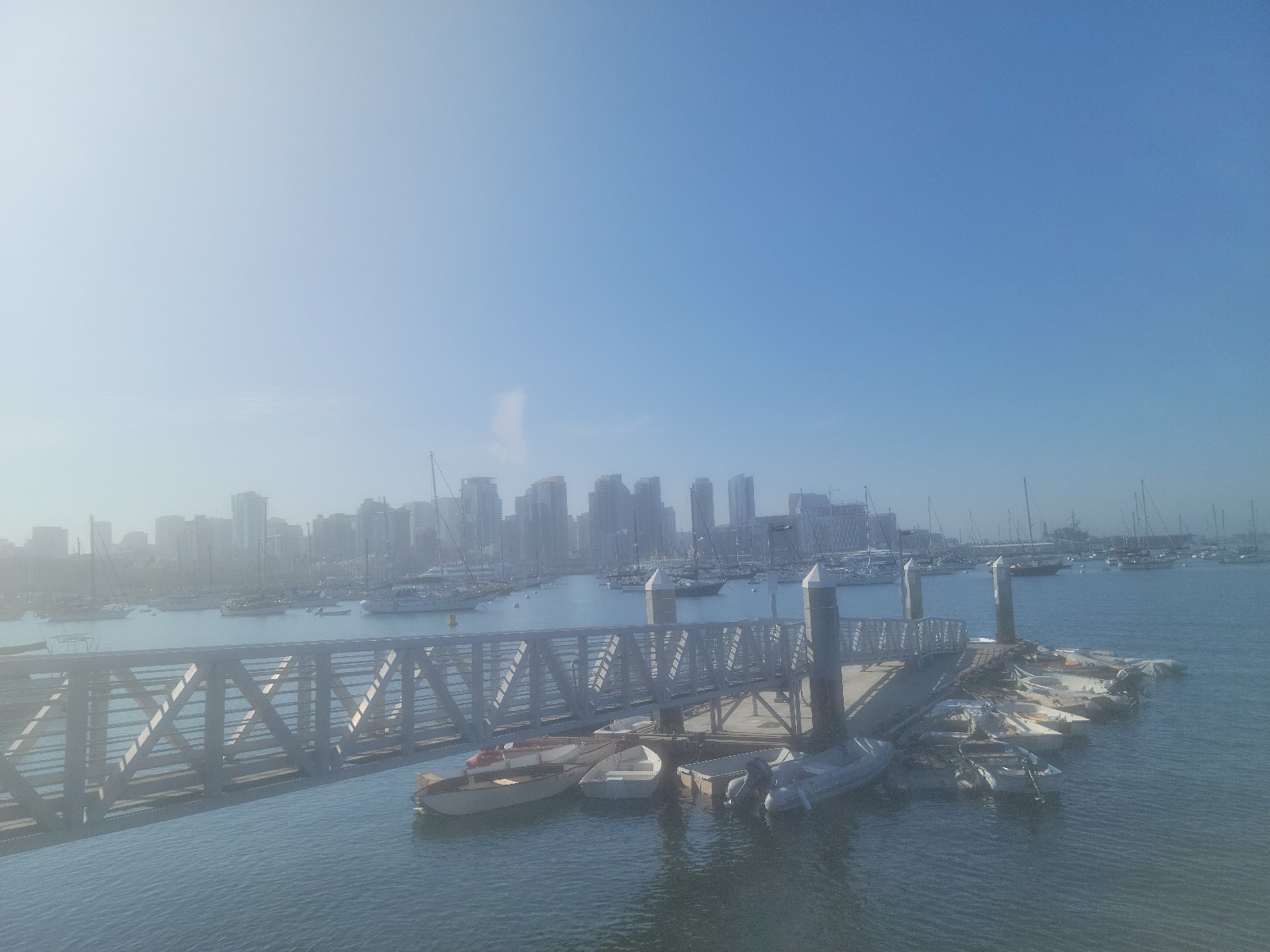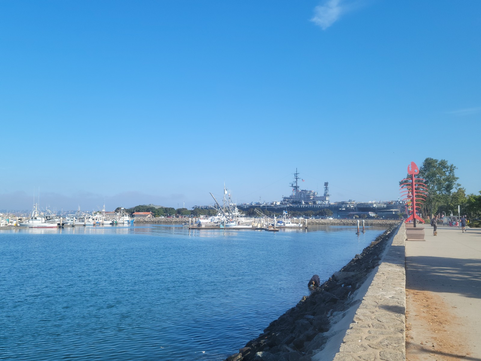 We didn’t sleep in too late though, because we wanted to go for a run before it got too hot. Josh got a bit of an earlier start than me, as he was planning to run 6 miles and had a little bit of remote work to do, while I only ran 4 miles. It was a nice view, running along the harbor toward the airport and back. It was the first time I’ve seen the USS Midway, the Star of India, and the Kissing Statue!