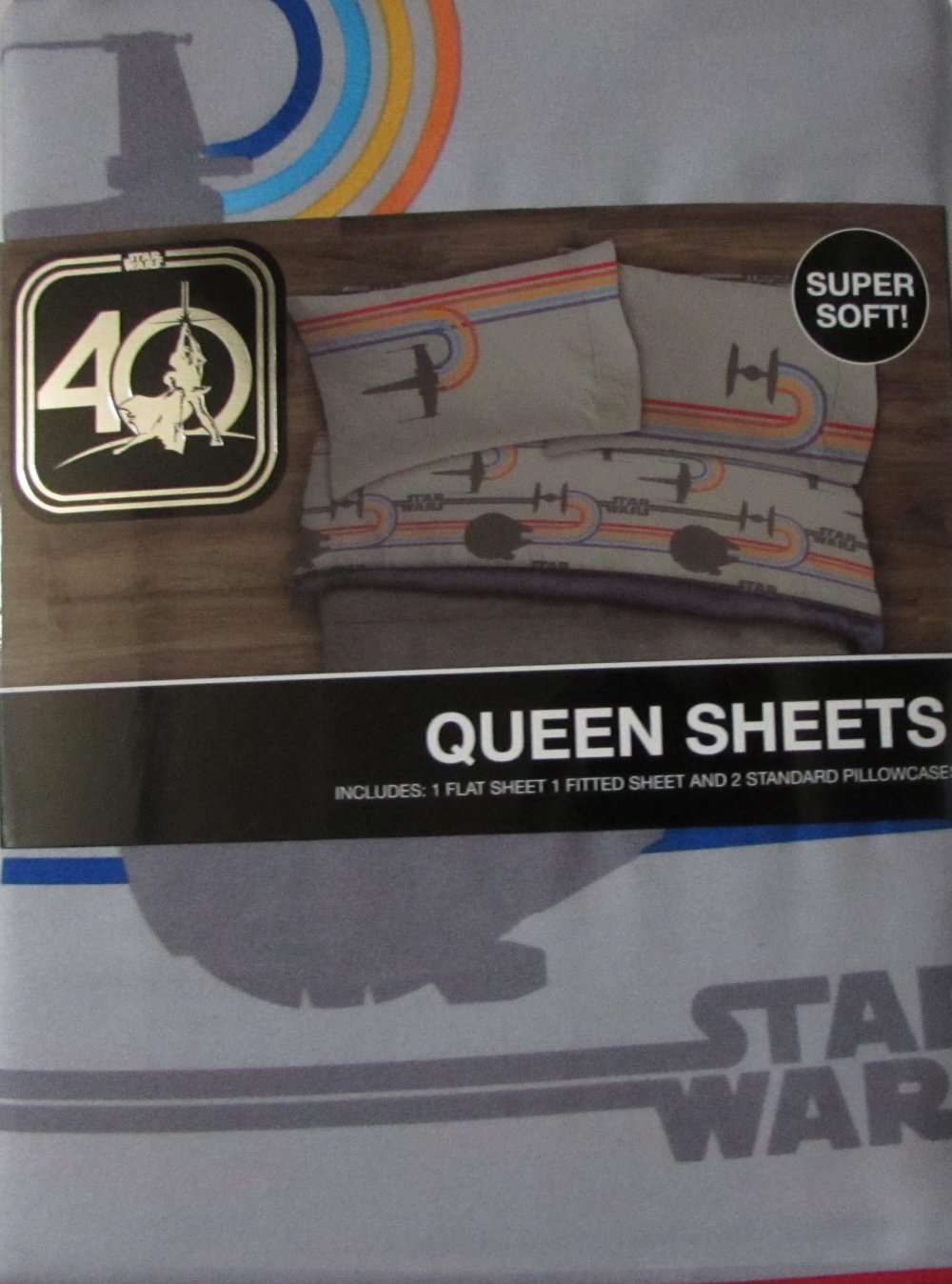 - Set of Star Wars 40th Anniversary Queen Sheets (includes one flat sheet, one fitted sheet, and two pillowcases)