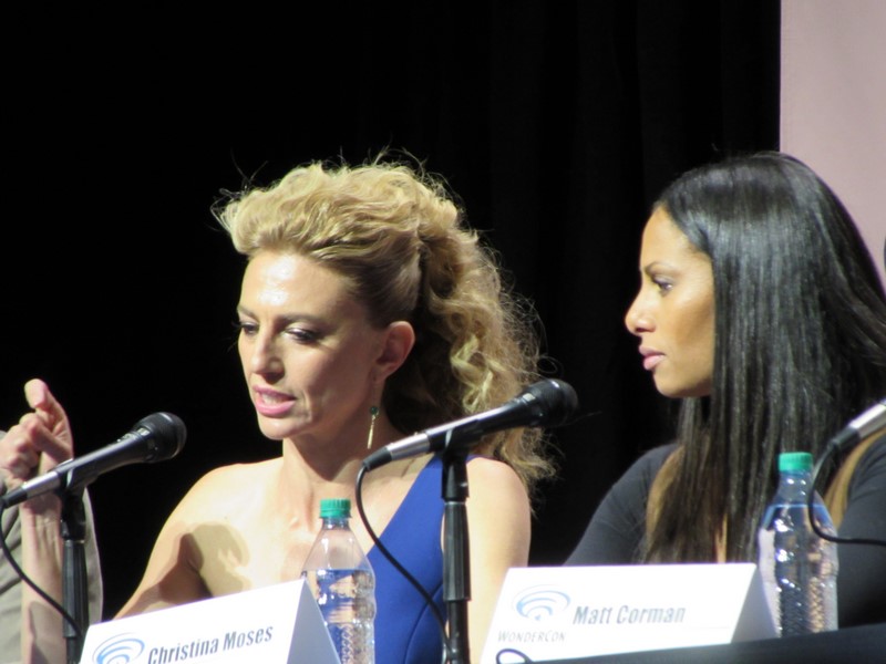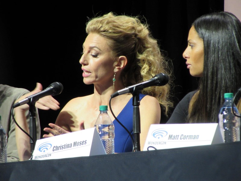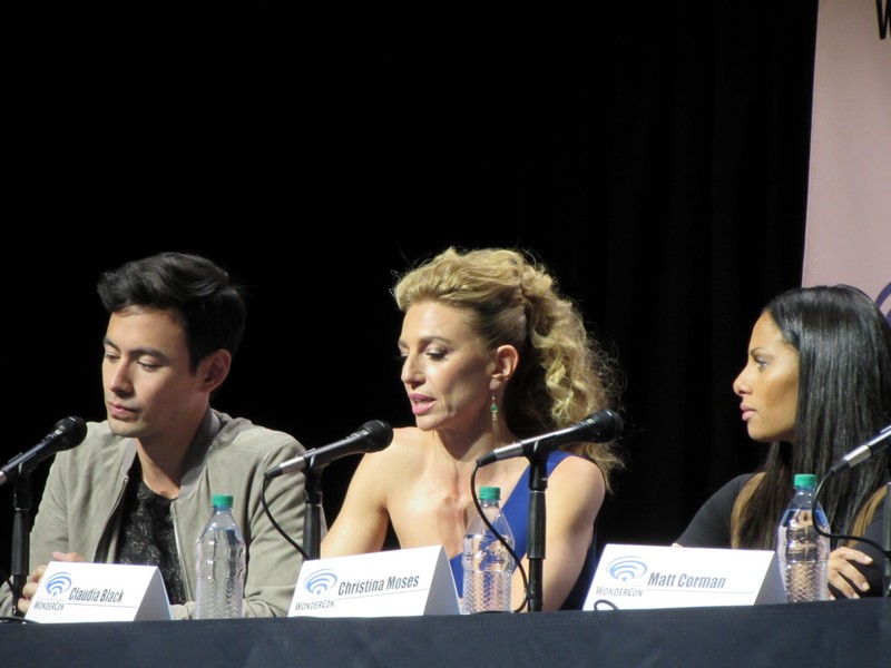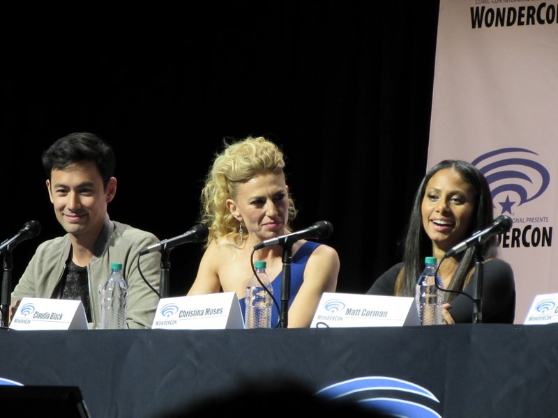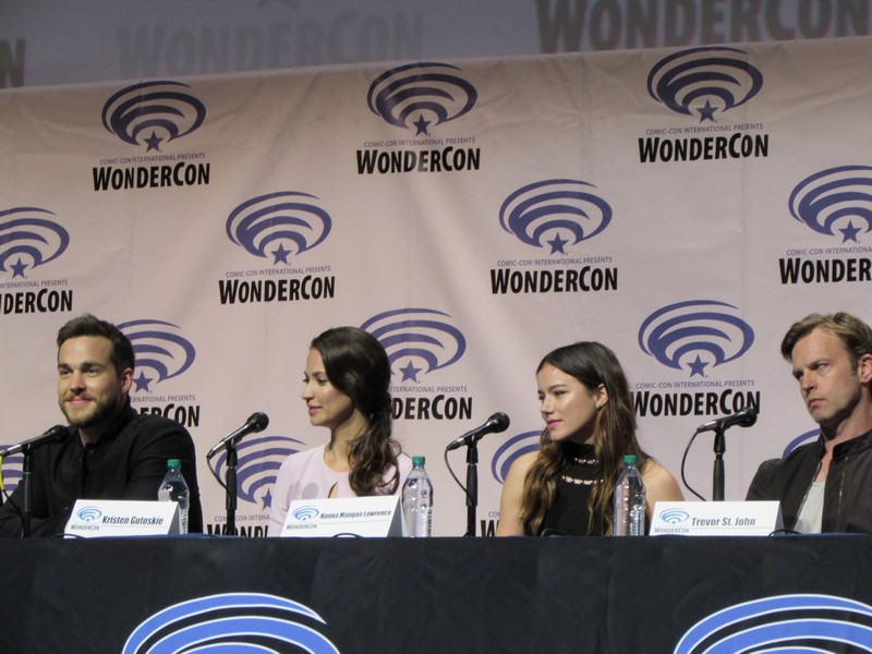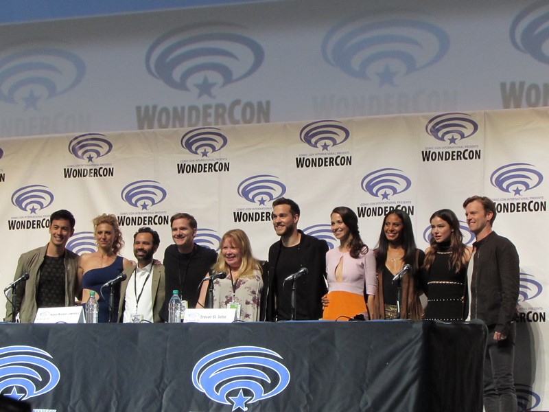 Following the screening of the episode, the panelists came out on stage, which were all of the cast members and executive producers who had been at the Containment signing I had attended earlier: cast members Trevor St. John, Hannah Mangan Lawrence, Kristen Gutoskie, Chris Wood, Christina Moses, Claudia Black, and George Young, and Executive Producers Julie Plec, Chris Ord, and Matt Corman. Executive Producer Julie Plec (The Vampire Diaries, The Originals) told us how the show came about, saying that it was modeled on a Belgium show called Cordon. She also spoke about how she loves virus movies, like The Stand and Outbreak, so this was right up her alley.