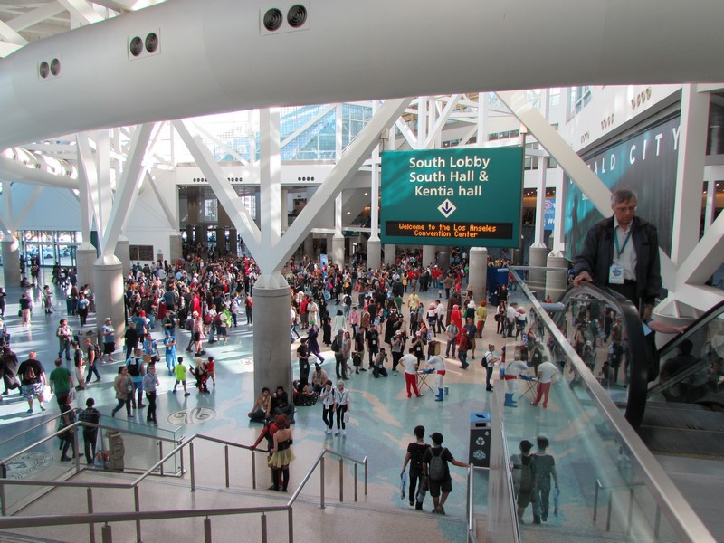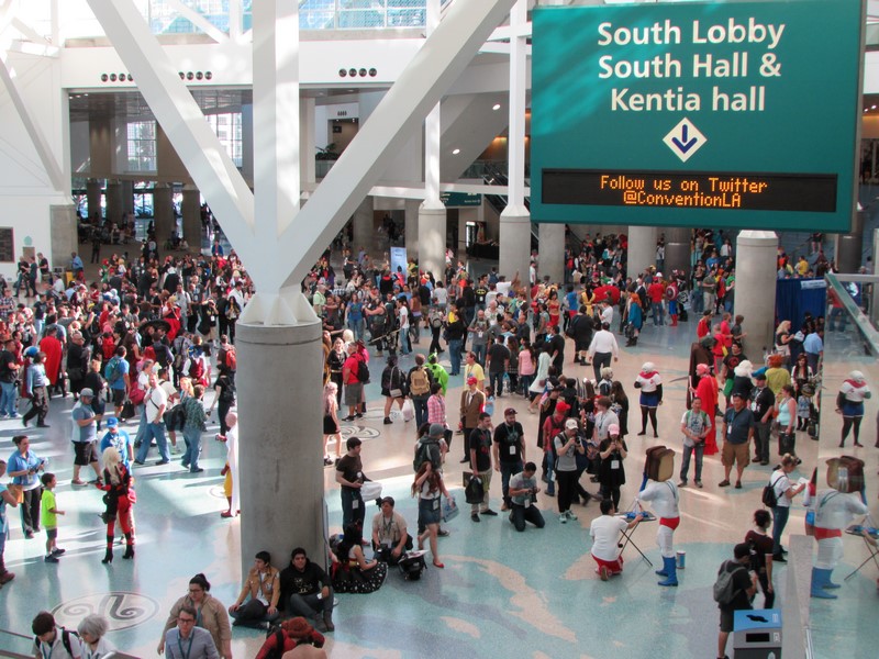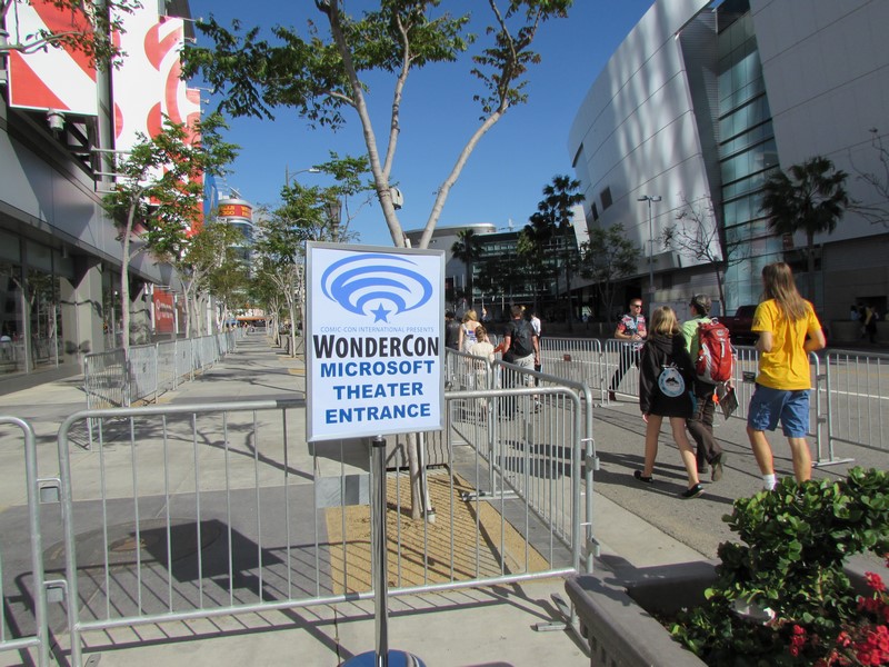 My next panel was Teenage Mutant Ninja Turtles: Out of the Shadows back in the Microsoft Theater at 5:45pm. I had planned to take the break between Containment and TMNT to get some food with Josh when he arrived, which I thought would be around 4:30pm-5:00pm at the latest. However, at 5pm I still hadn’t heard from him. Around 5:20pm, he let me know that he was stuck in traffic on the 5 and was almost to the 710. That was still a ways away. So I just ate another granola bar, and made my way out of the Exhibit Hall toward the Microsoft Theater, since I wasn’t sure if the line would be more of a hassle than it had been for Containment. At that point, I was on the right side of the South Hall. When I tried to exit, apparently the tap out area on that side was not working, or off limits for some reason, as everyone wanting to exit were directed to the next tap out area — which was in the center of the South Hall. It was a little annoying, because there was just a big group of people trying to get out and we had to just keep walking.