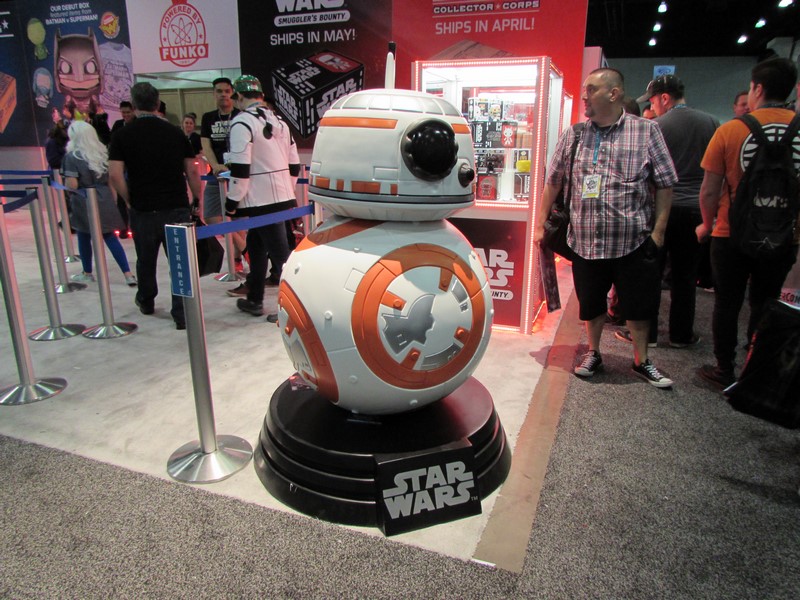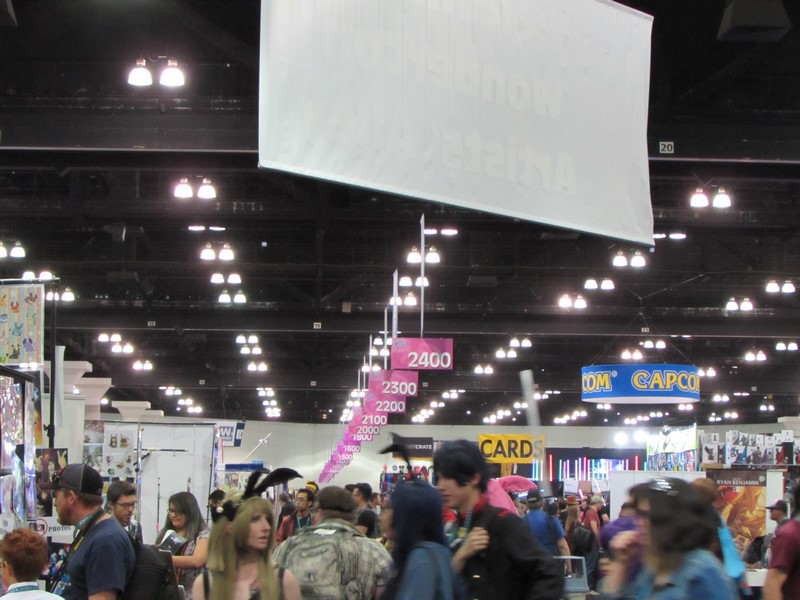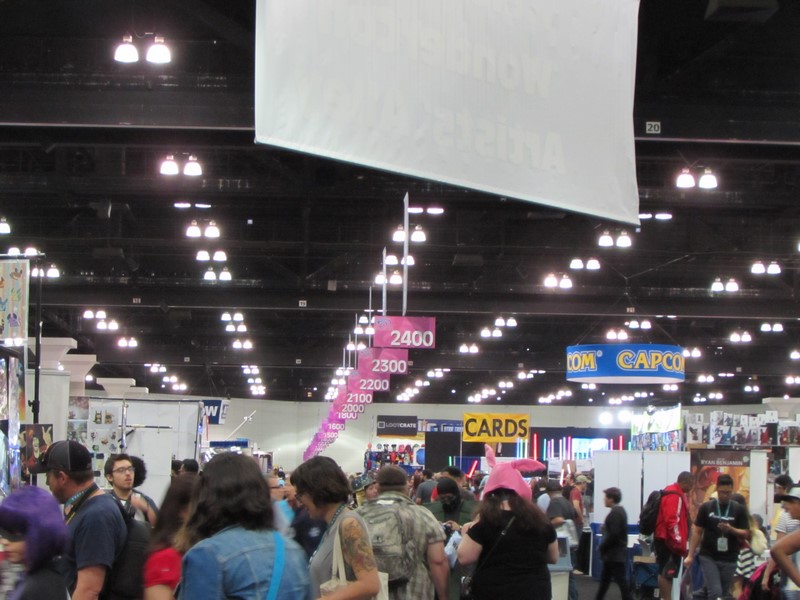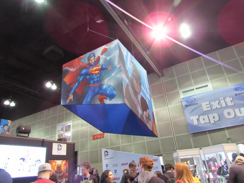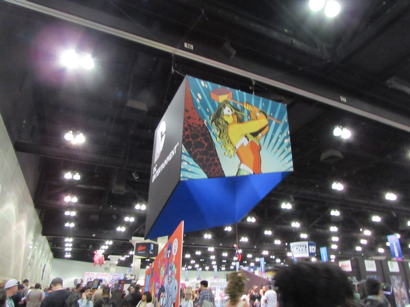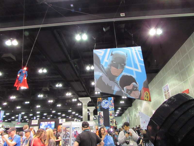 The panel wrapped up around 4:15pm, at which time I walked back over to the Exhibit Hall while I waited for Josh to arrive after getting off of work. I saw a little more of the Exhibit Hall that I hadn’t seen that morning, such as the Comic-Con HQ booth, the DC Comics booth – complete with LEGO Bat Signal and floating Superman, and the Teenage Mutant Ninja Turtles booth, as well as Artists Alley, just to name a few things. I wouldn’t say it was packed, but it was quite a bit more crowded than it had been between noon and 1pm earlier that day.