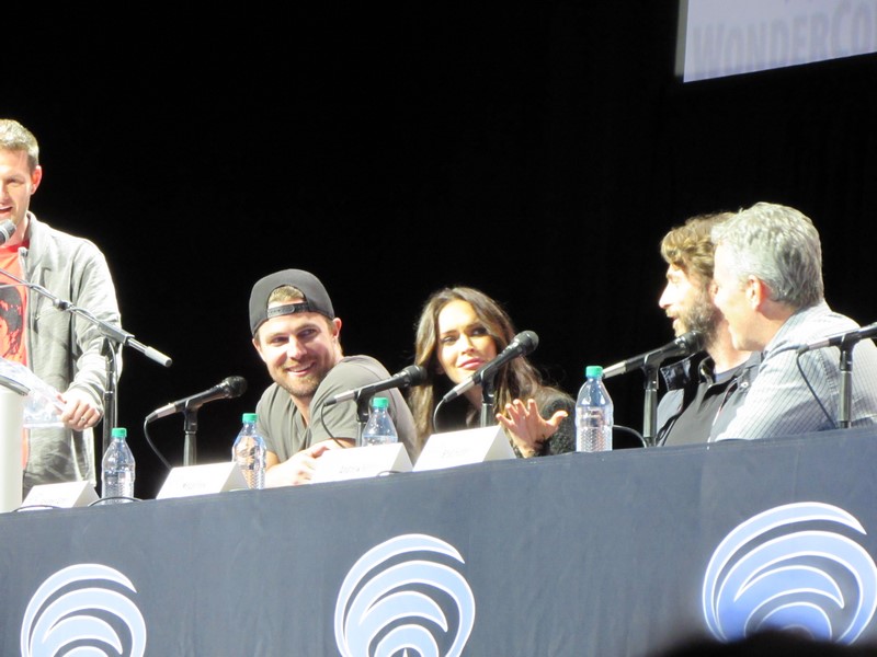 After the clip, the panelists talked a bit about the stunts. Also, Amell commented that there strangely aren’t any alleys in New York City, and that the alley they filmed in is probably the only one!