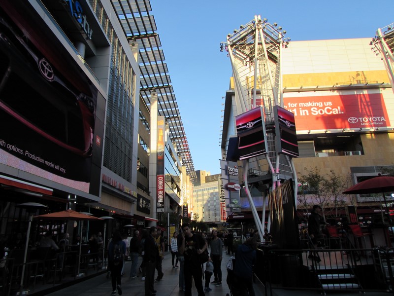 The panel was on the shorter side, having started a little after 5:45pm and ending at 6:30pm, by which time I figured Josh must be waiting on me. Upon exiting the Microsoft Theater, we were directed to go to the left, toward the rest of LA Live, and away from the Staples Center. It was a bit chaotic exiting that way, as there were a bunch of Lakers related events going on in the courtyard outside of the Microsoft Theater, so people were in line for Lakers things, while WonderCon attendees letting out of the panel had to make their way across all the Lakers fans. I finally got past all that, and texted Josh to see where he was. He had just parked.