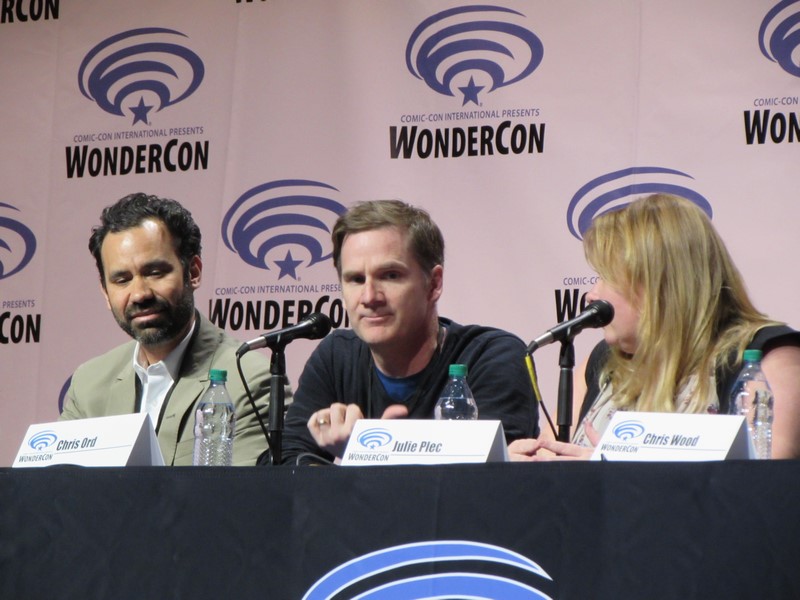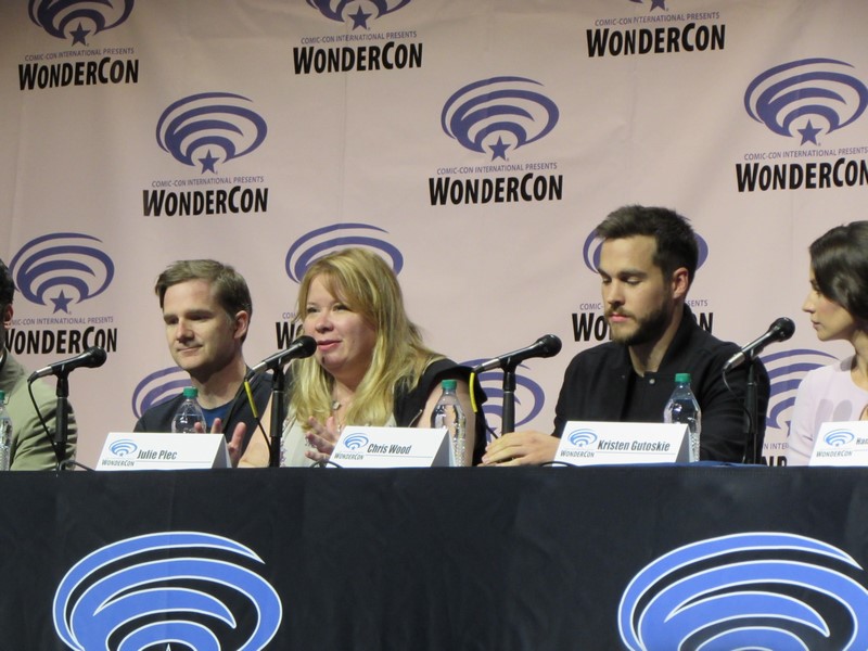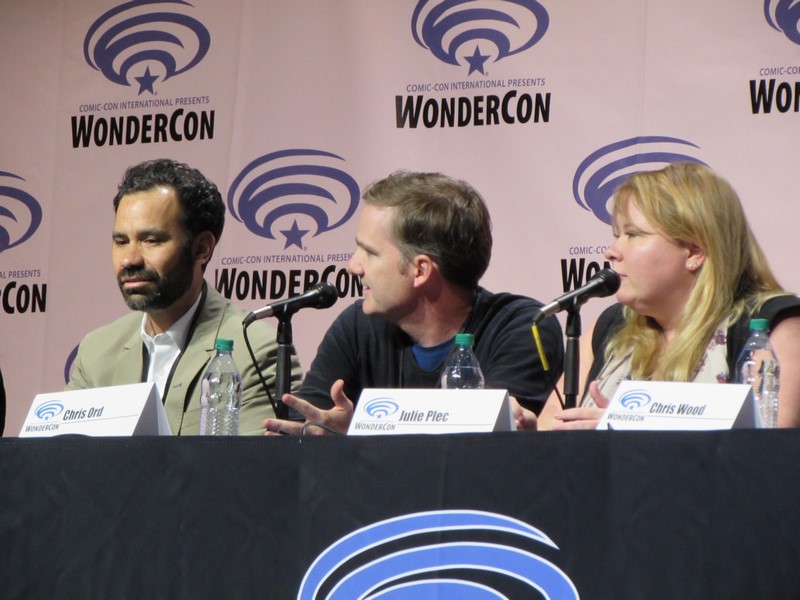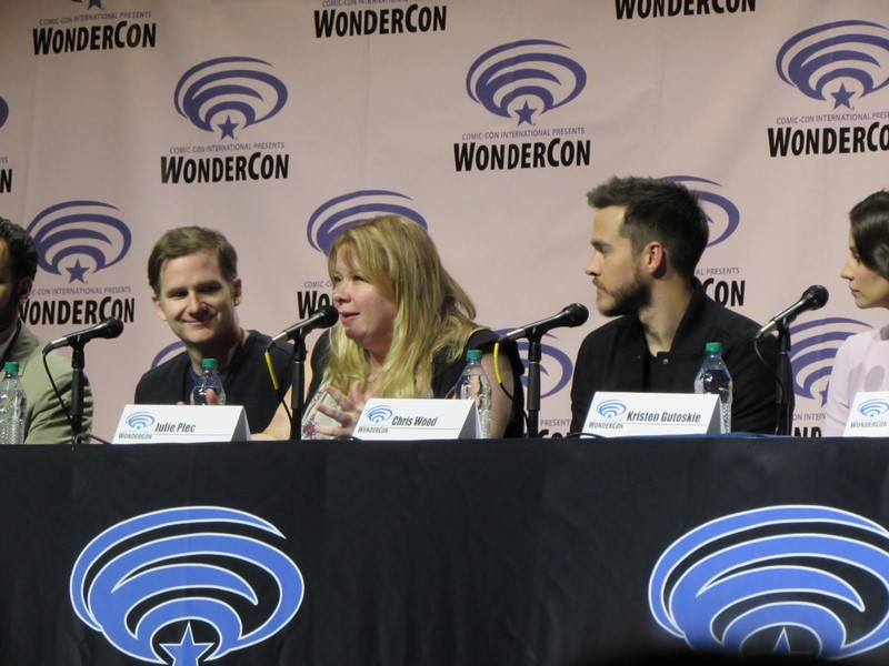 Plec went on to tell us about bringing this group of cast members together, which includes several alums from her other shows The Vampire Diaries and The Originals. Plec said that she knew she wanted Chris Wood in the show, but it was up to him to secure his part. She pointed out that Trevor St. John’s character, Leo, wasn’t even supposed to be in the pilot, but they put him in briefly because it would be a much bigger role as the series progressed.