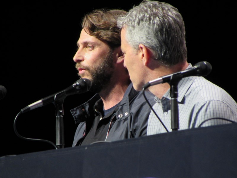 The first panelists brought out on stage were producers Andrew Form and Brad Fuller. They talked about the various new characters they were able to put into Teenage Mutant Ninja Turtles: Out of the Shadows, the sequel to 2014’s Teenage Mutant Ninja Turtles movie. These characters include Bebop and Rocksteady (who they actually had wanted to put in the first film, but it didn’t work out), Baxter Stockman (played by Tyler Perry), Krang and his Technodrome, and of course, Casey Jones (played by Stephen Amell). They also revealed that Baxter Stockman, the lead scientist at TCRI, was actually supposed to be in the first movie, but his scenes got cut.