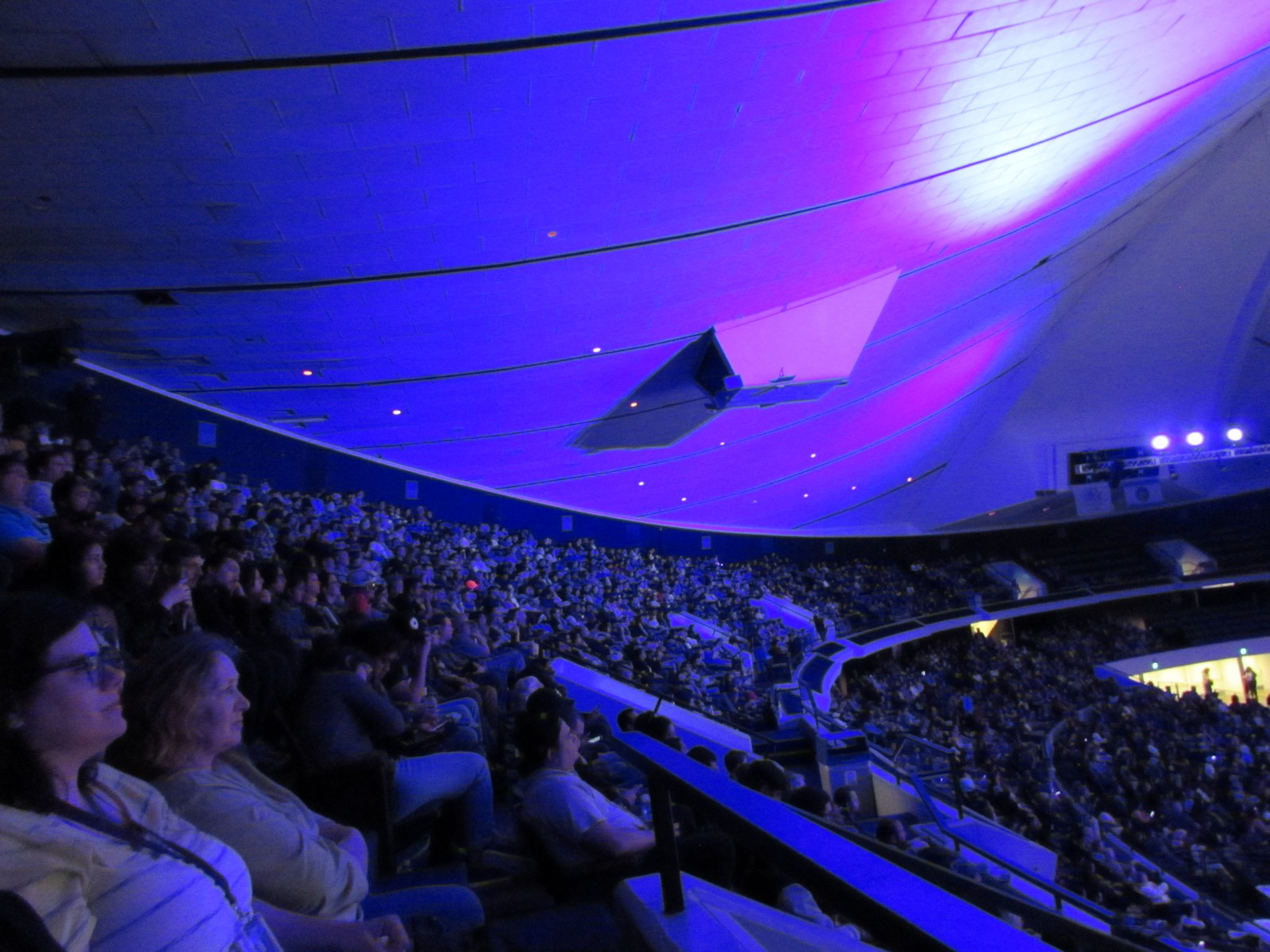 Violet and I were most excited to see the Ready Player One panel, but the panel prior to it was the Batman Ninja panel, which was an animated DC/Warner Bros. film that featured our favorite, brooding, Bat-loving hero in Japan, dressed as a Ninja (Samurai [?]), along with the Joker. We walked in towards the end of the film, but we got to see Batman and the Joker do some fun battle in a more anime-esce animation style.