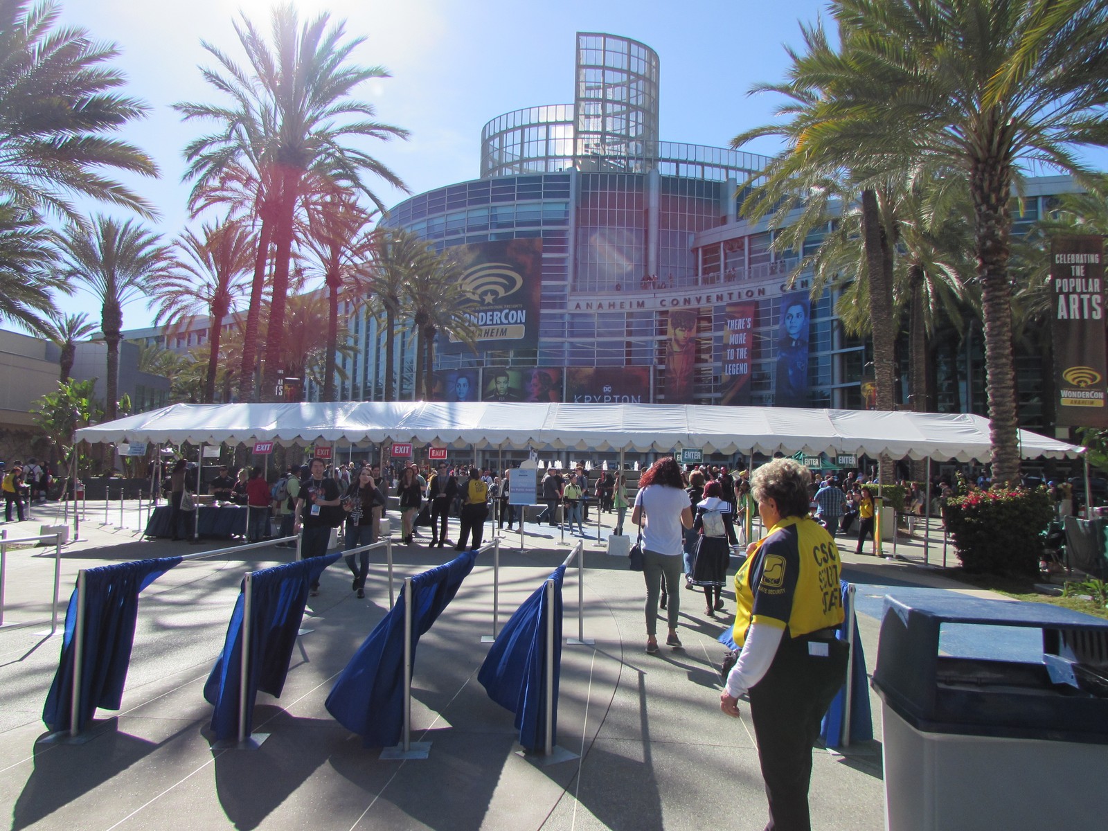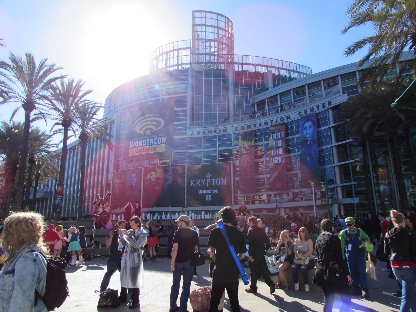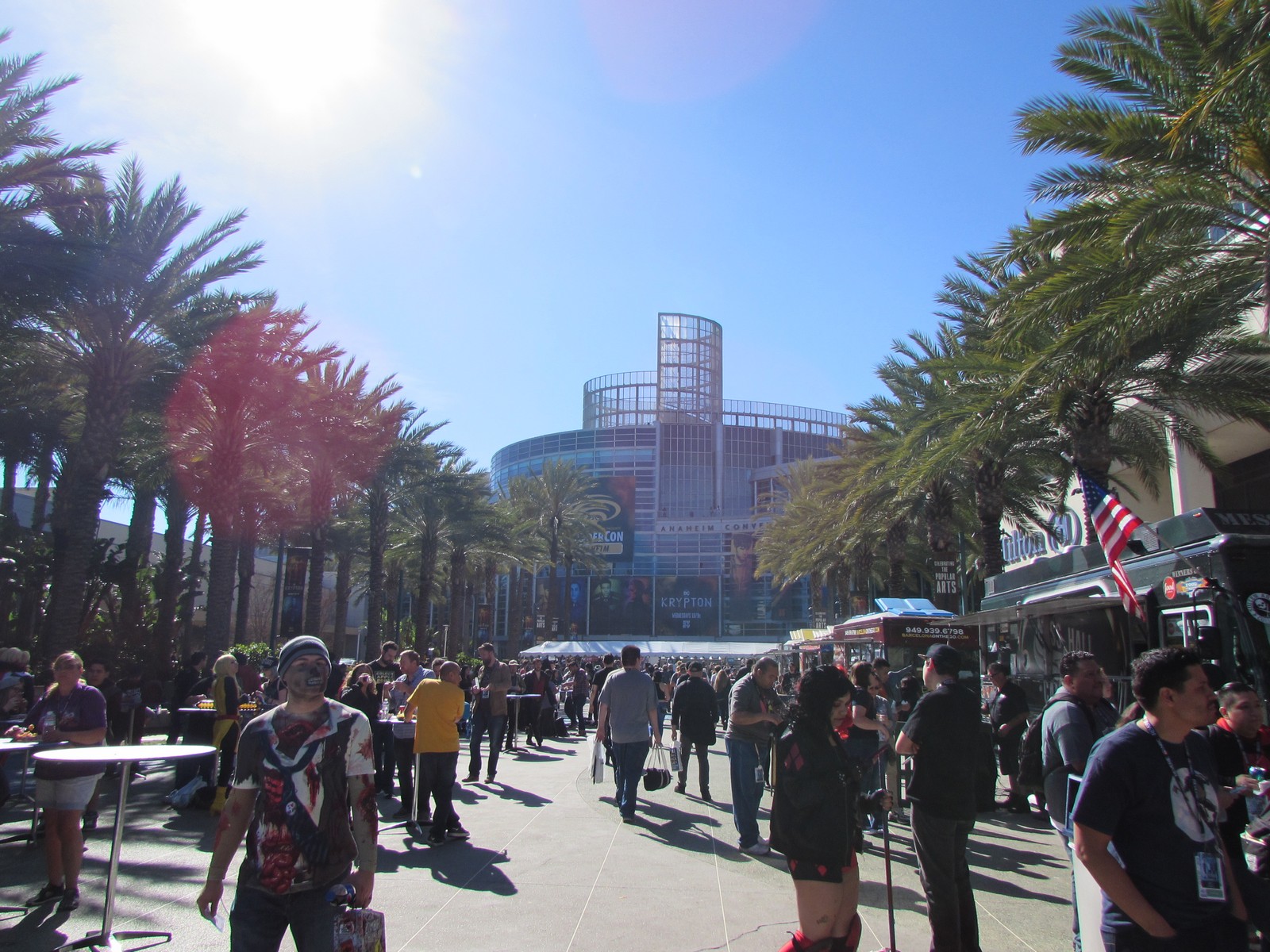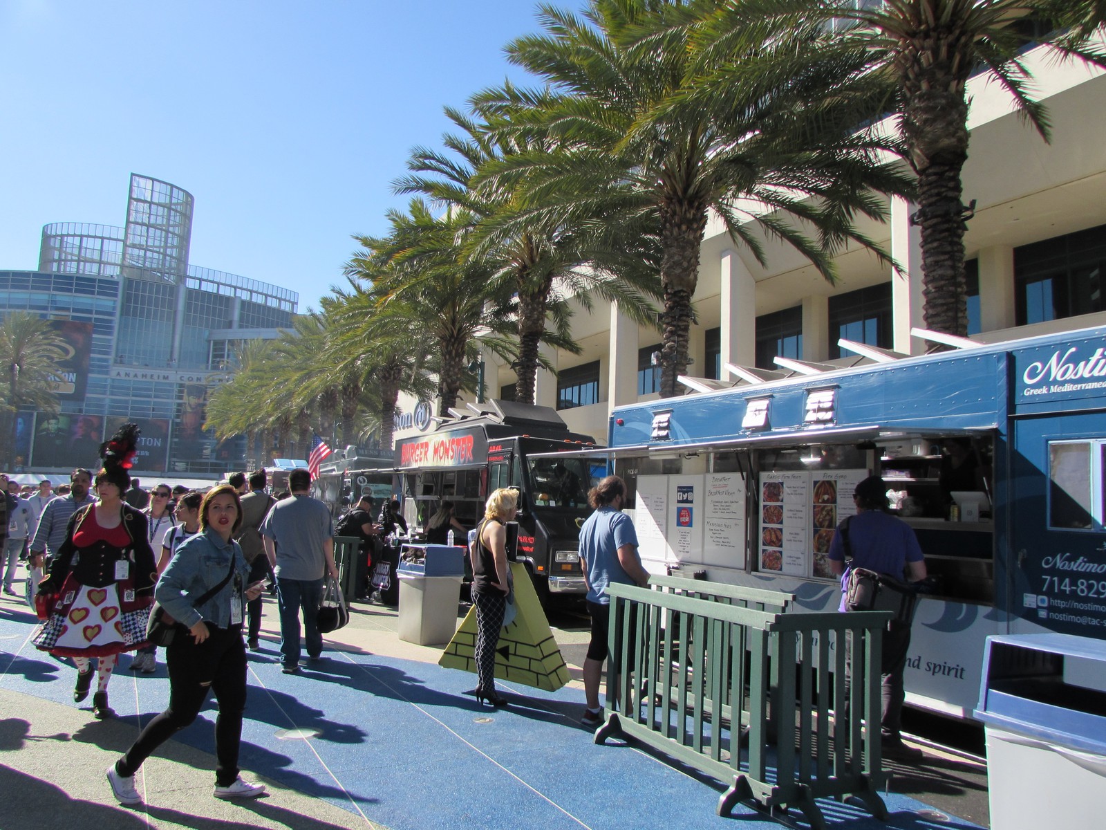 This year, WonderCon took place at the Anaheim Convention Center Friday, March 23 through Sunday, March 25. Josh and I both had to work on Friday, so we didn’t arrive until late afternoon. We were both hungry, so we stopped at the food trucks to grab some grub. Oddly, you had to show your badge to get into the food truck area. That was new. In the past, anyone could go to the food trucks. Then once you got near the fountain area, you had to scan in with your badge.