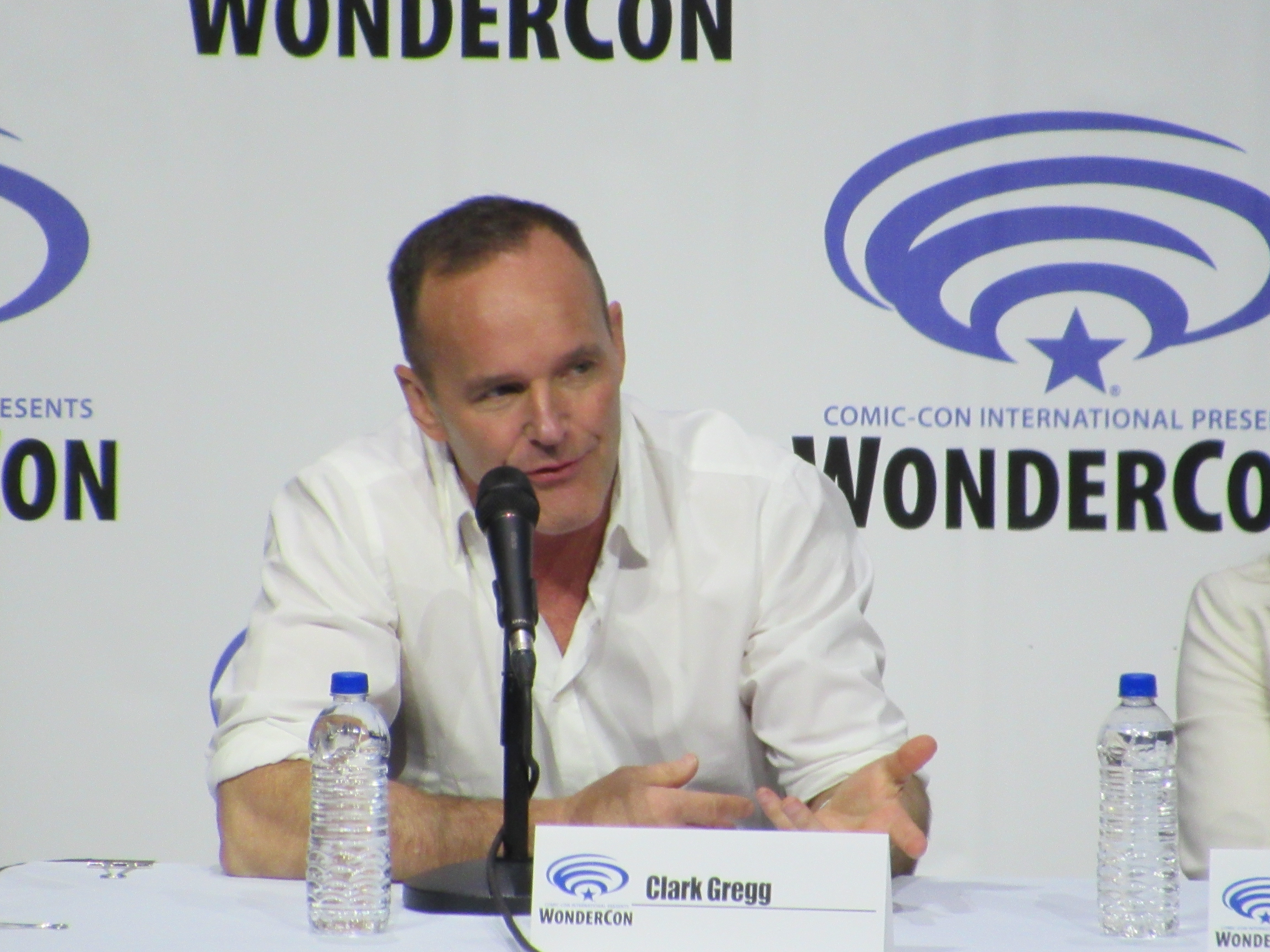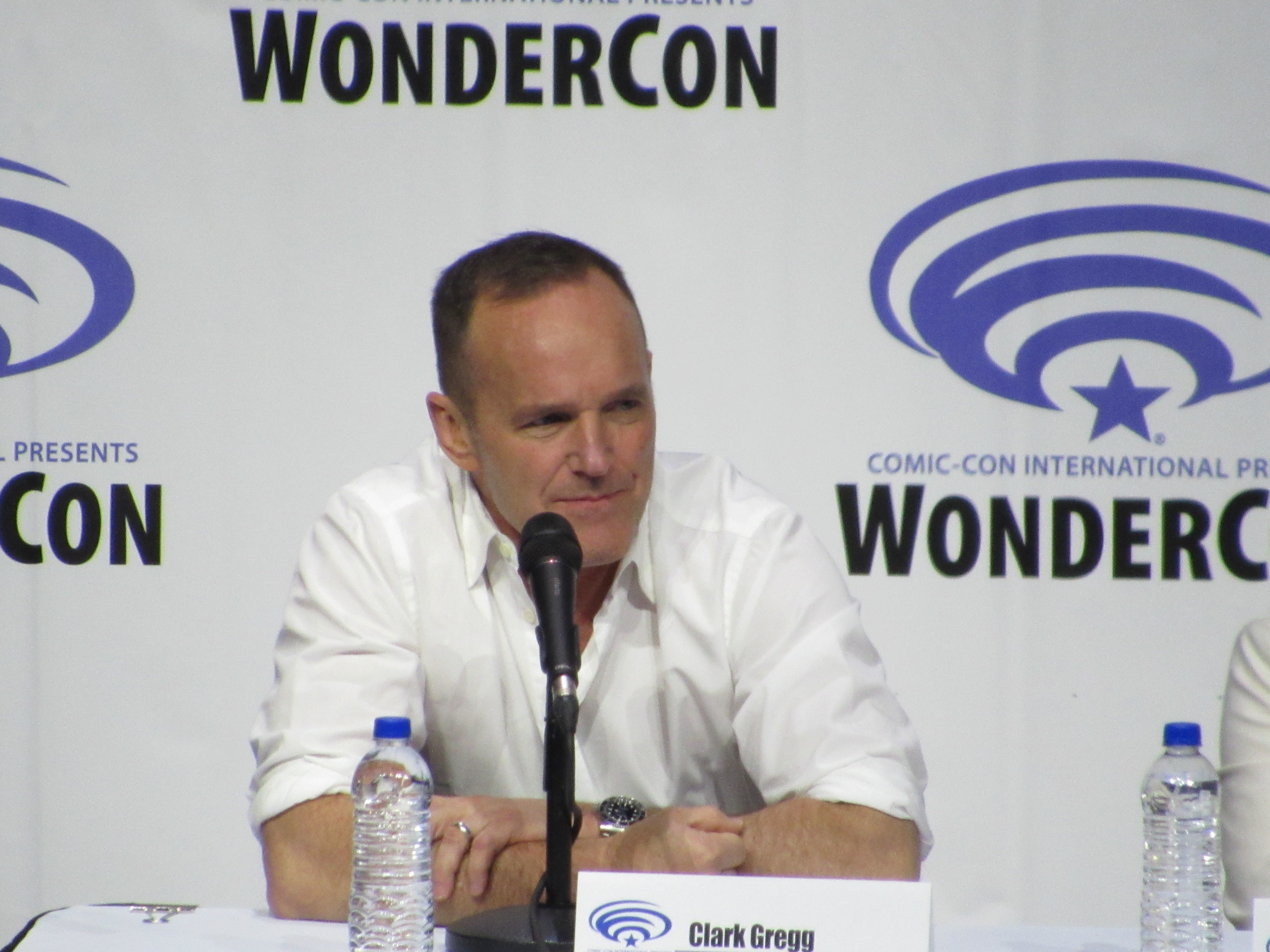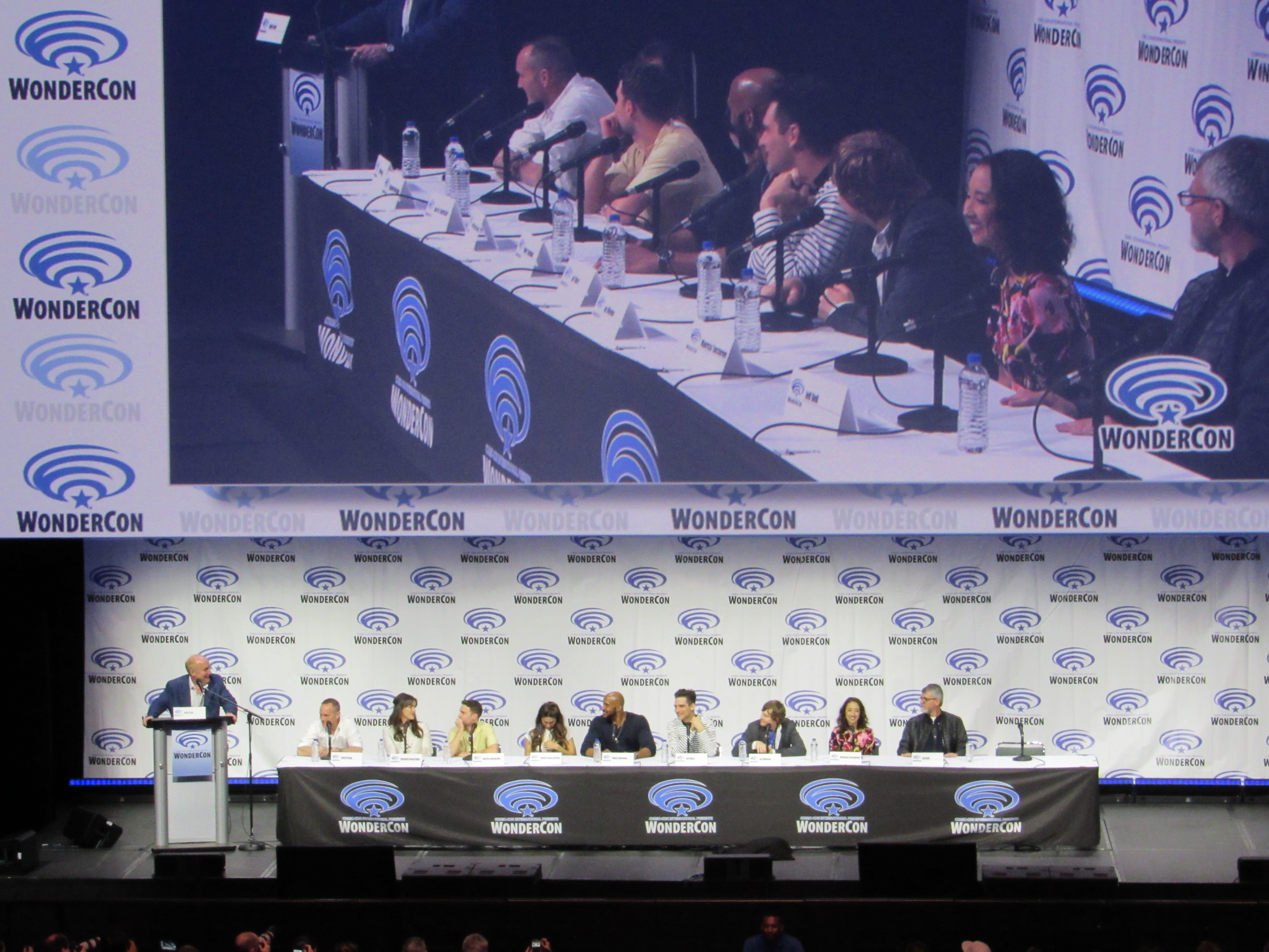 So when Jeph Loeb asked Clark Gregg if he had a birthday wish, Clark joked, “I would like to know what song people just sang.” He then spoke about how lucky he was to have to chance to direct the first episode of Season 6, and asked Jeph Loeb if there was any way to see a few minutes of it. After a bit of build up, the entire Season 6 premiere episode was shown to the audience. (It seemed like this was supposed to be a surprise, but the fact that this was going to happen was clearly stated in the WonderCon schedule.)