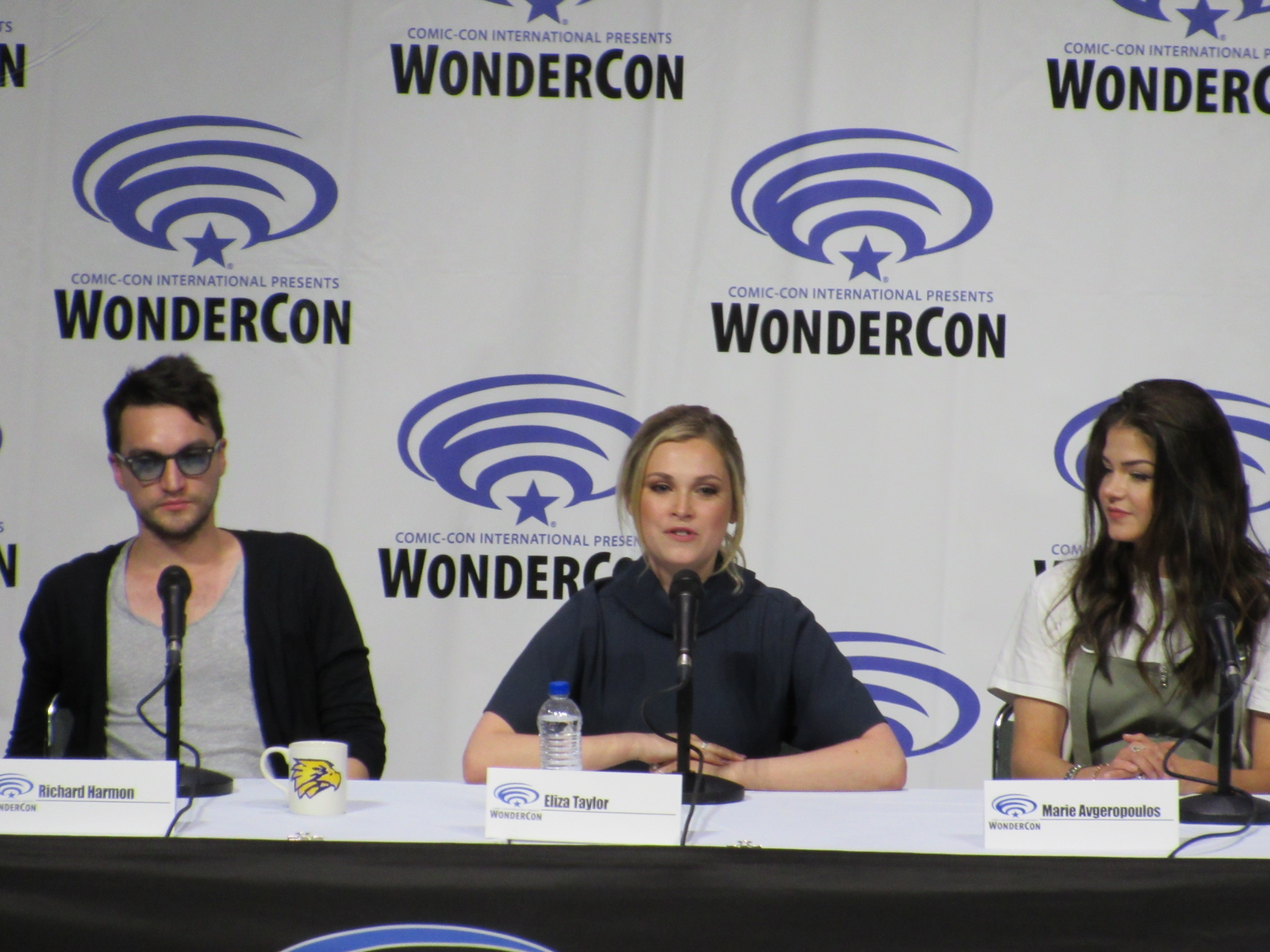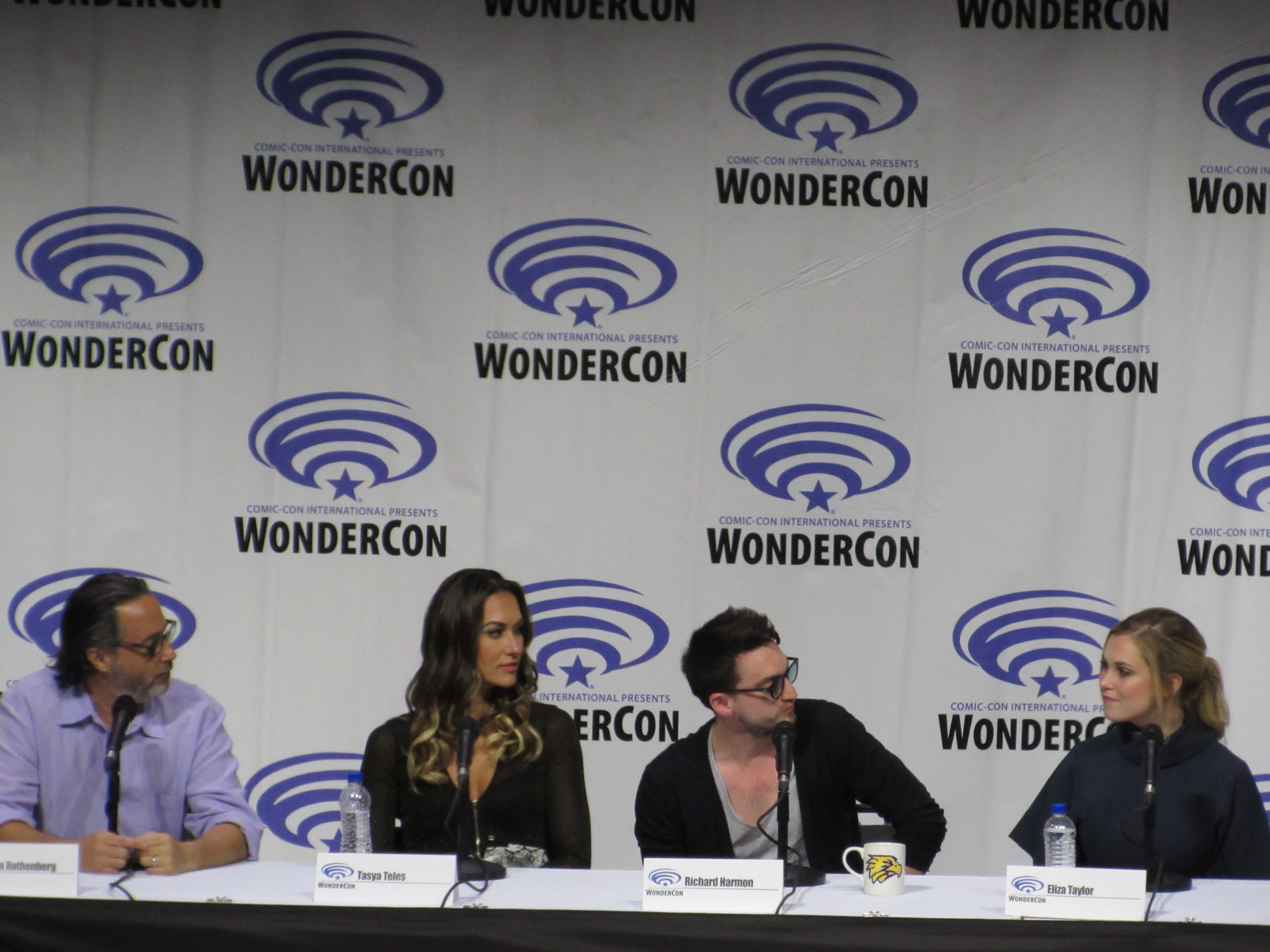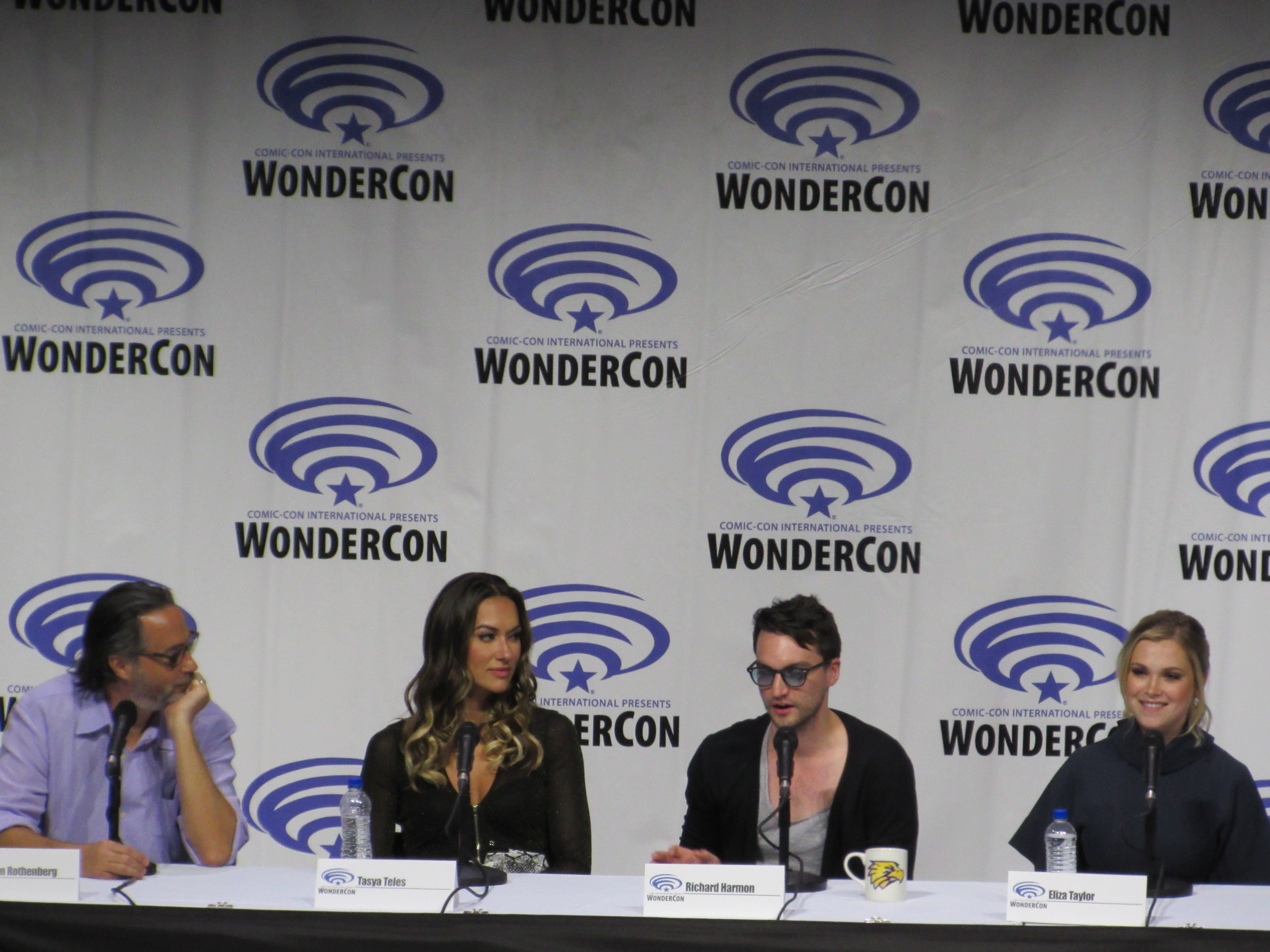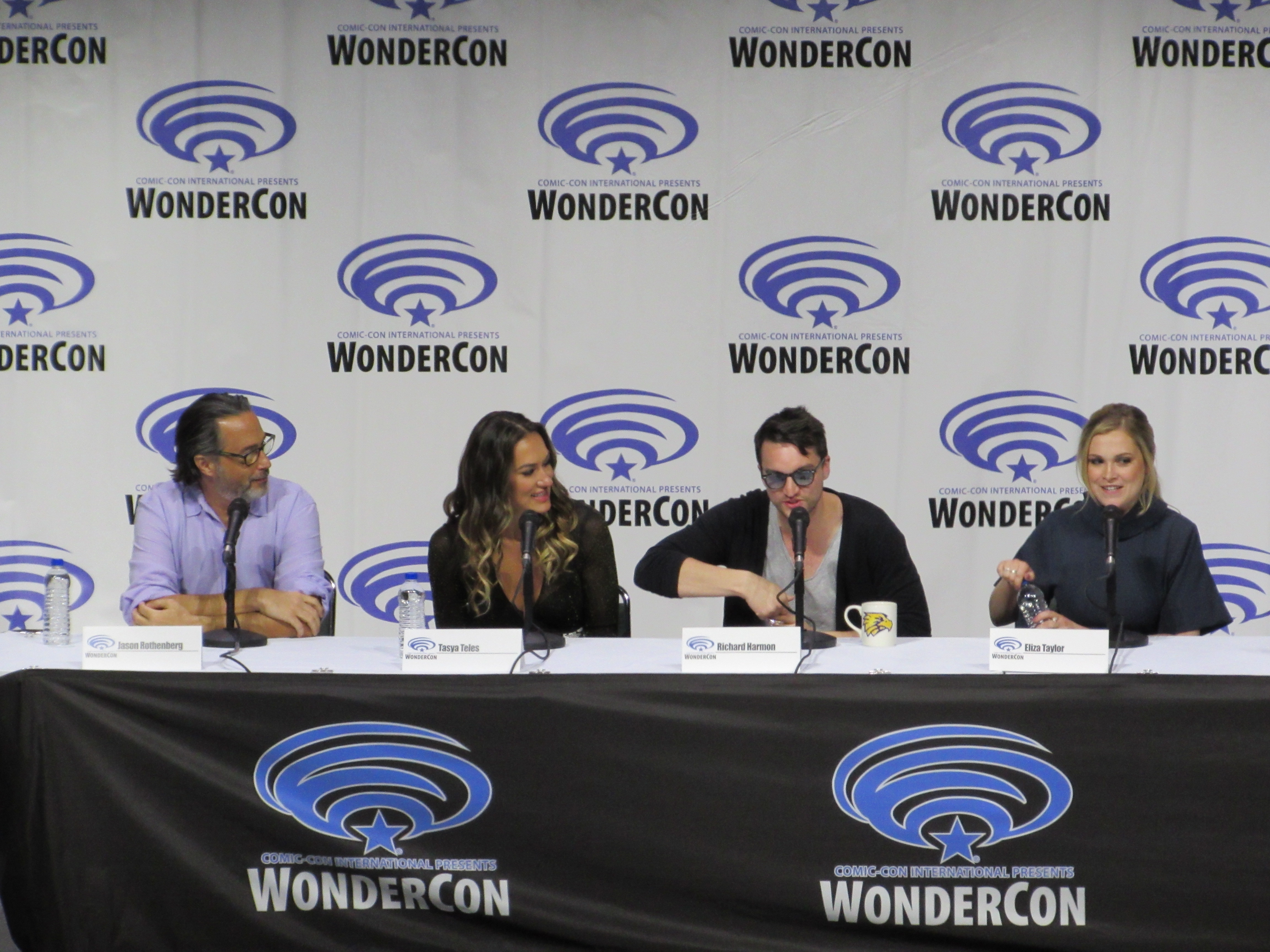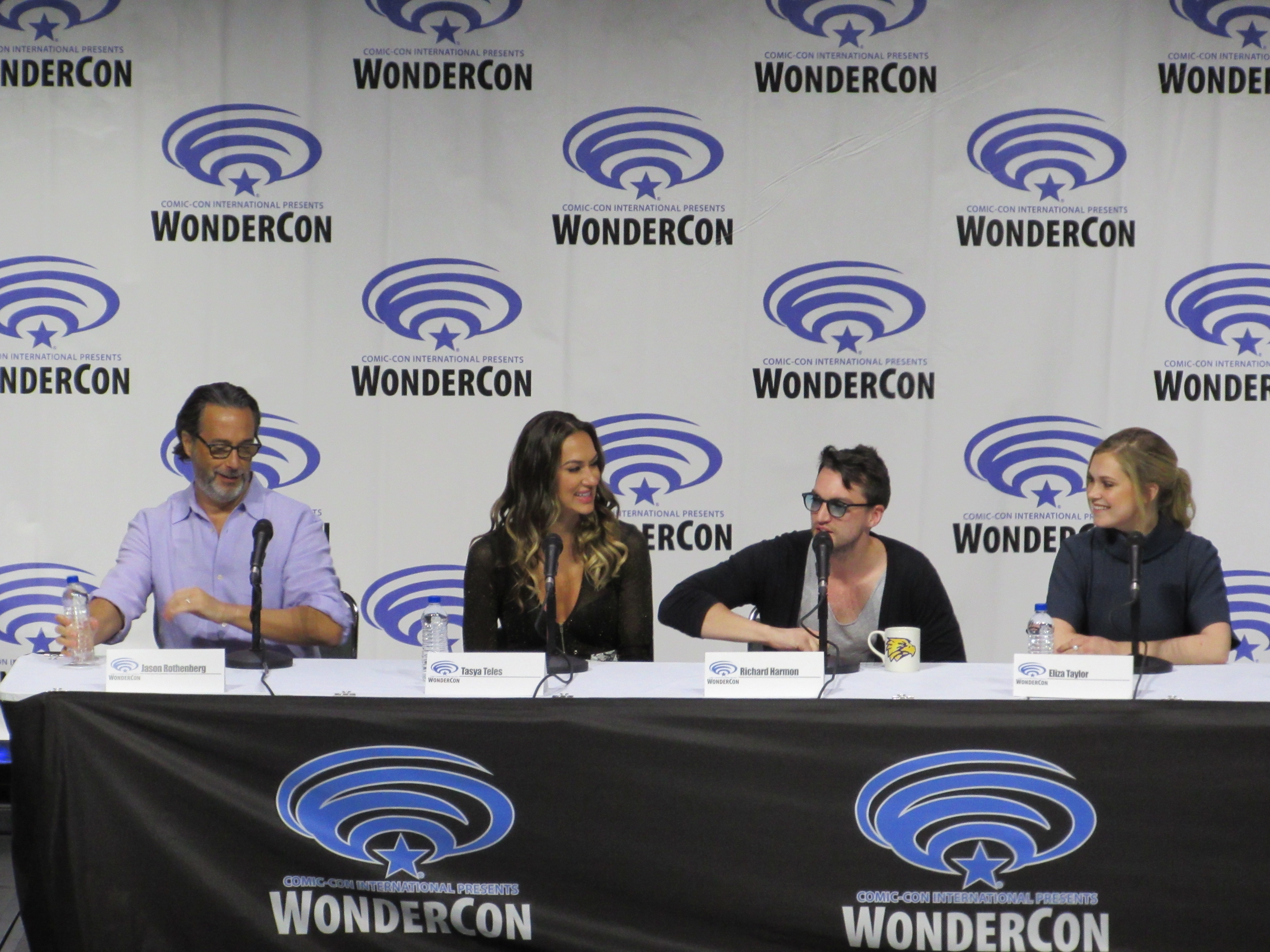 After the episode, the panelists came out on stage, which included showrunner Jason Rothenberg and actors Tasya Teles (Echo), Richard Harmon (Murphy), Eliza Taylor (Clarke), Marie Avgeropoulos (Octavia), Shannon Kook (Jordan), JR Bourne (Russell), and Sachin Sahel (Jackson). Bob Morley (Bellamy) had been originally scheduled to attend the panel, but apparently couldn’t make it, so Sachin, who hadn’t been scheduled to attend, took his place. Bob Morley’s absence was a bit of a disappointment for me, as last year Eliza Taylor hadn’t been able to make it to the WonderCon panel, and I haven’t seen the two of them together on a panel since WonderCon 2016!