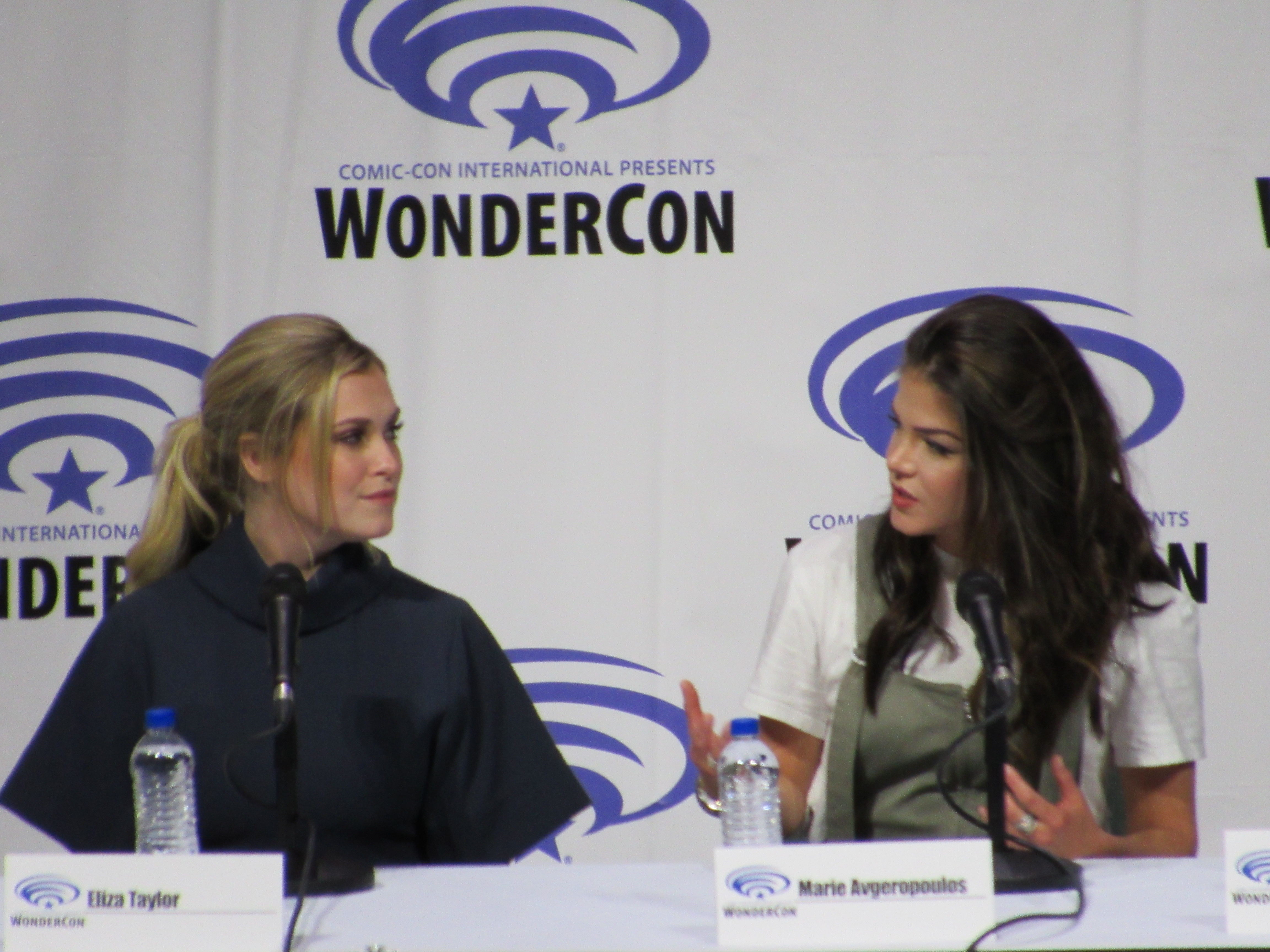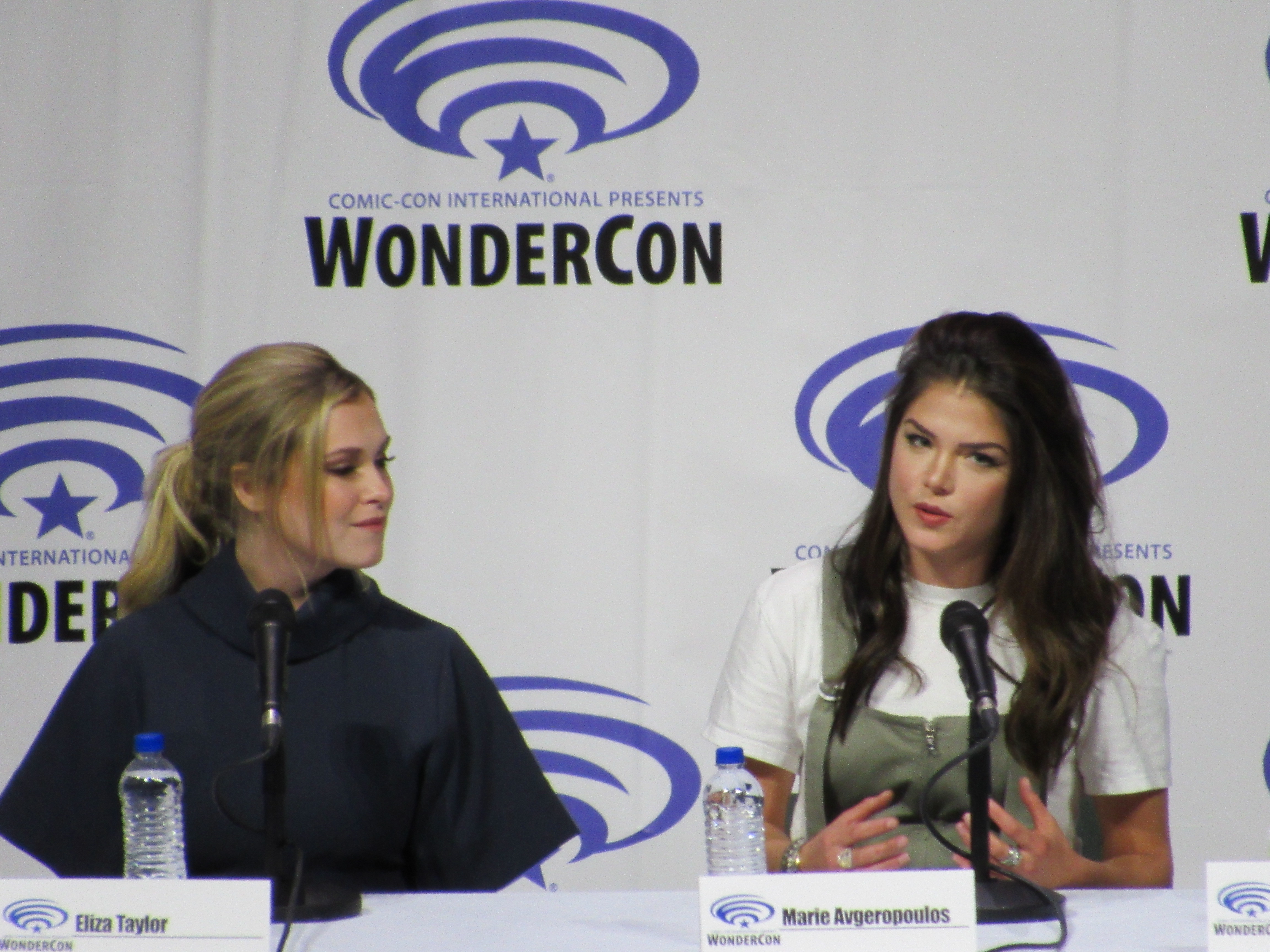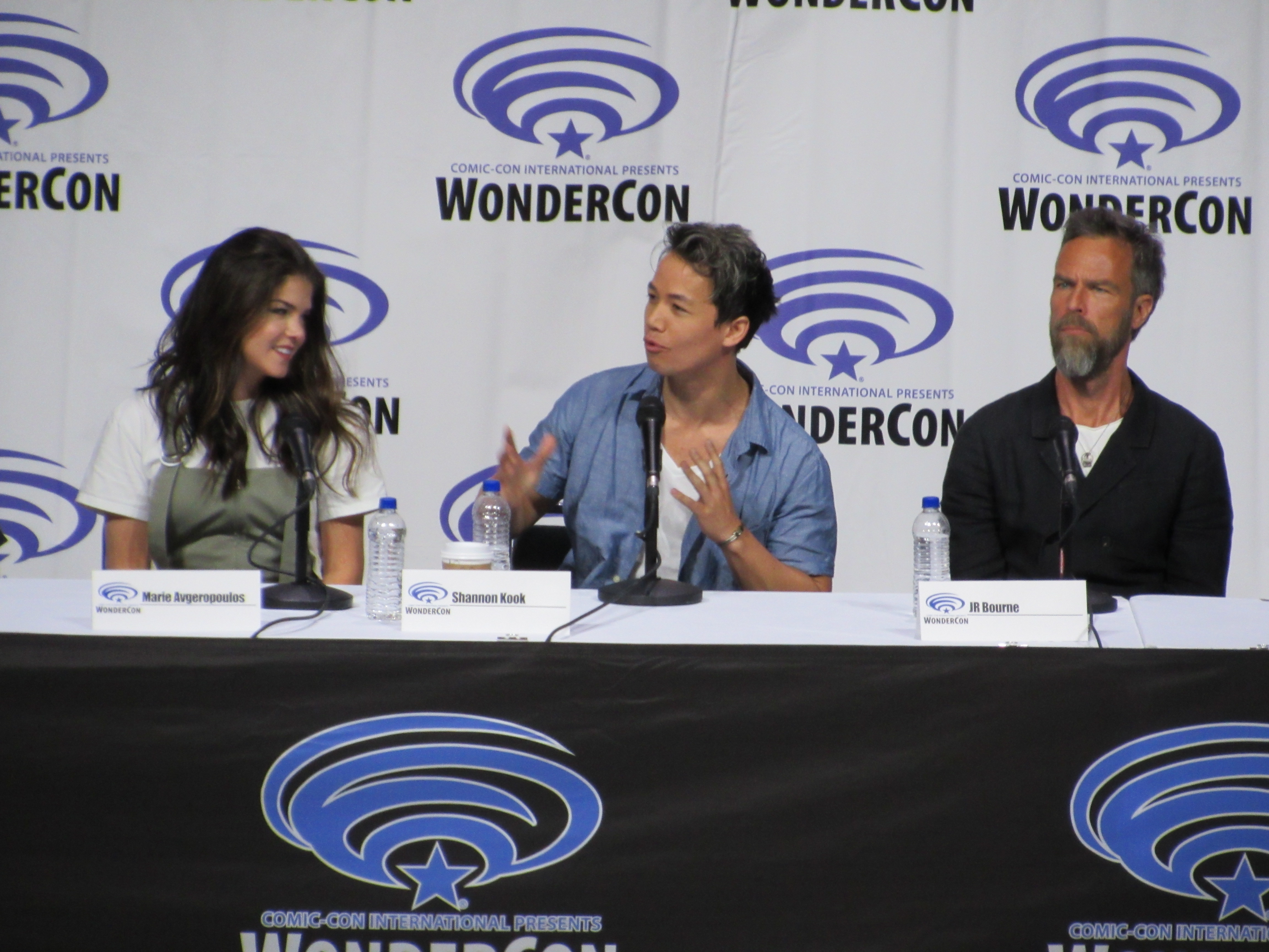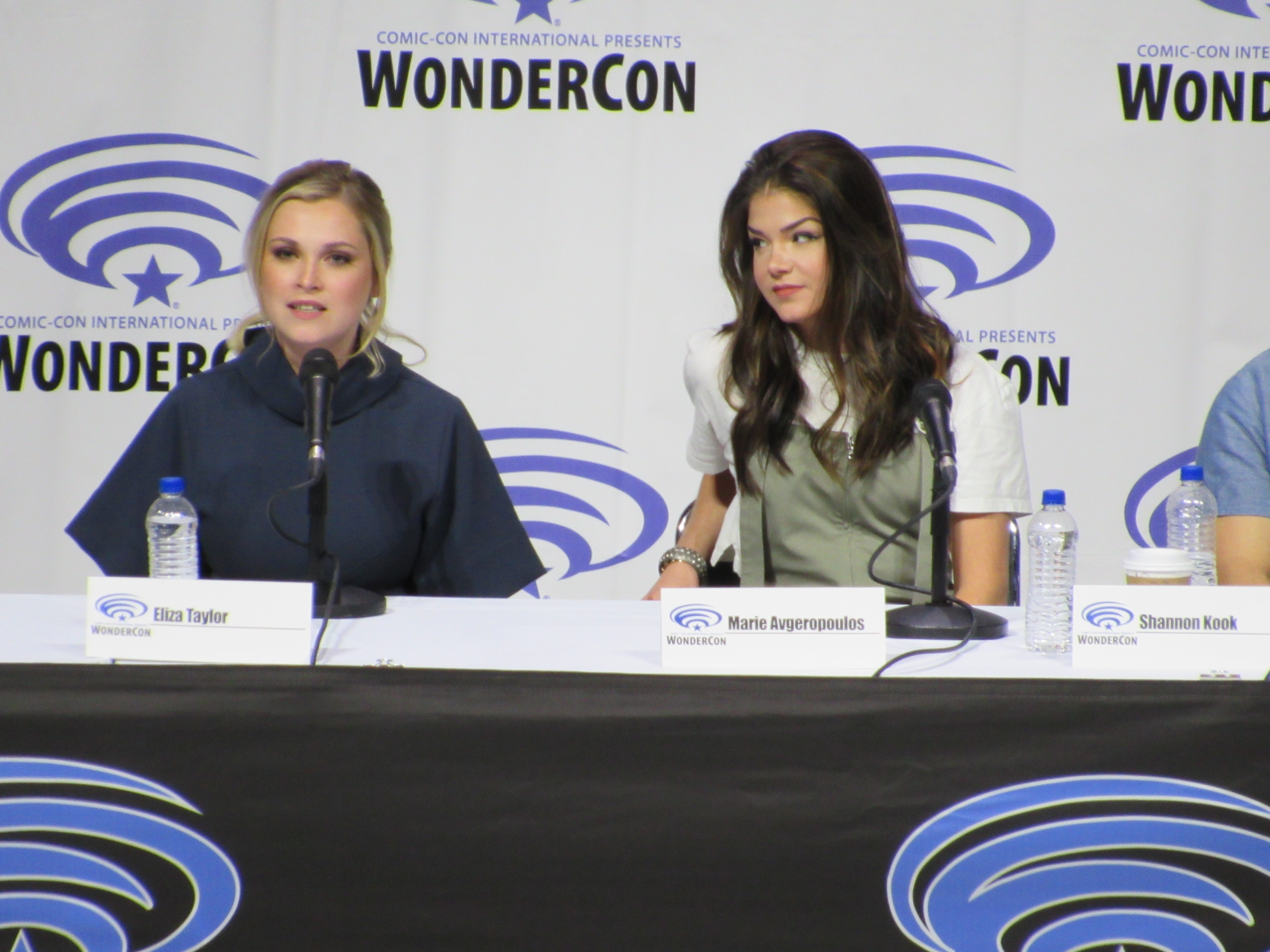 After the episode, the panelists came out on stage, which included showrunner Jason Rothenberg and actors Tasya Teles (Echo), Richard Harmon (Murphy), Eliza Taylor (Clarke), Marie Avgeropoulos (Octavia), Shannon Kook (Jordan), JR Bourne (Russell), and Sachin Sahel (Jackson). Bob Morley (Bellamy) had been originally scheduled to attend the panel, but apparently couldn’t make it, so Sachin, who hadn’t been scheduled to attend, took his place. Bob Morley’s absence was a bit of a disappointment for me, as last year Eliza Taylor hadn’t been able to make it to the WonderCon panel, and I haven’t seen the two of them together on a panel since WonderCon 2016!