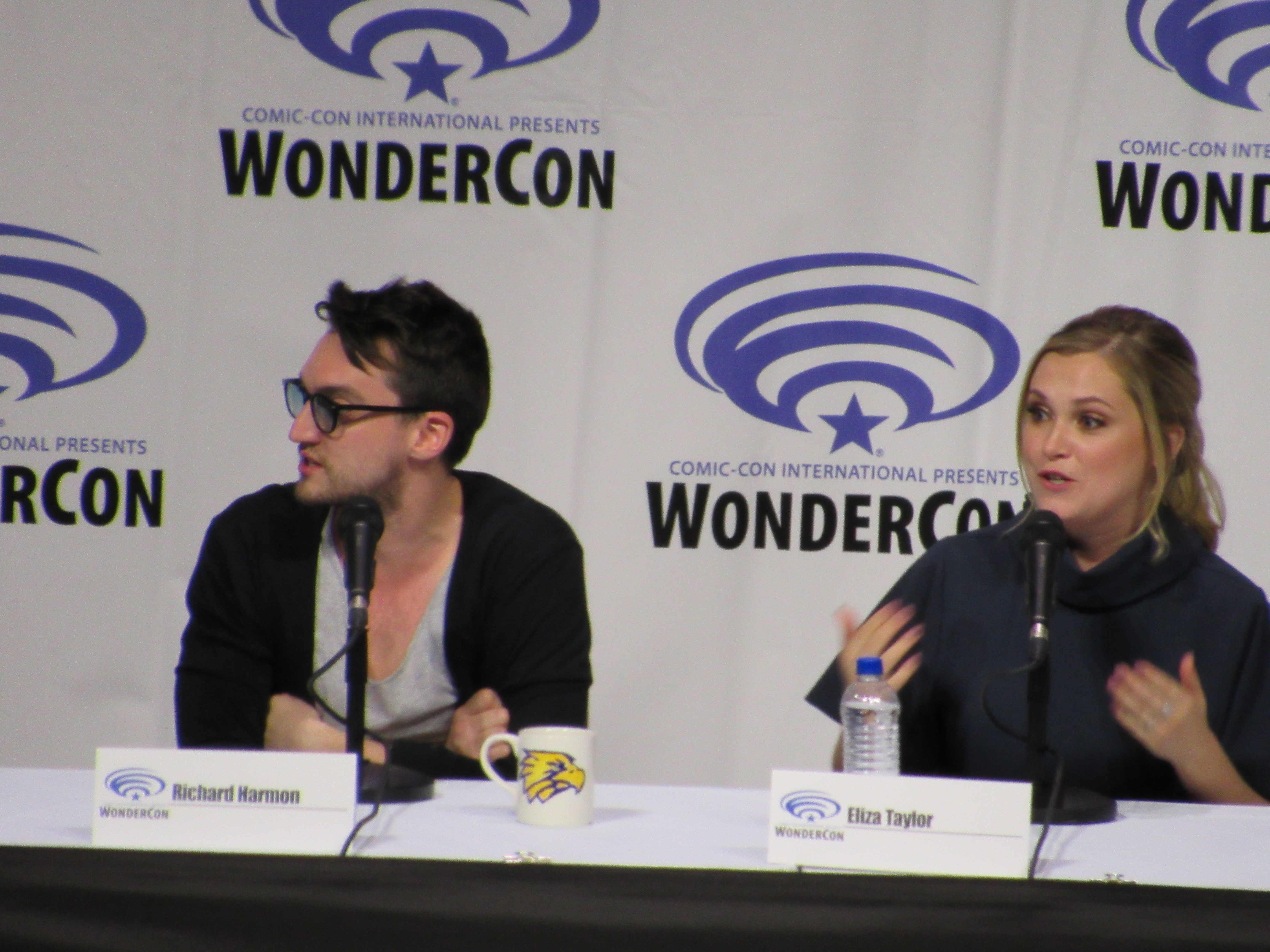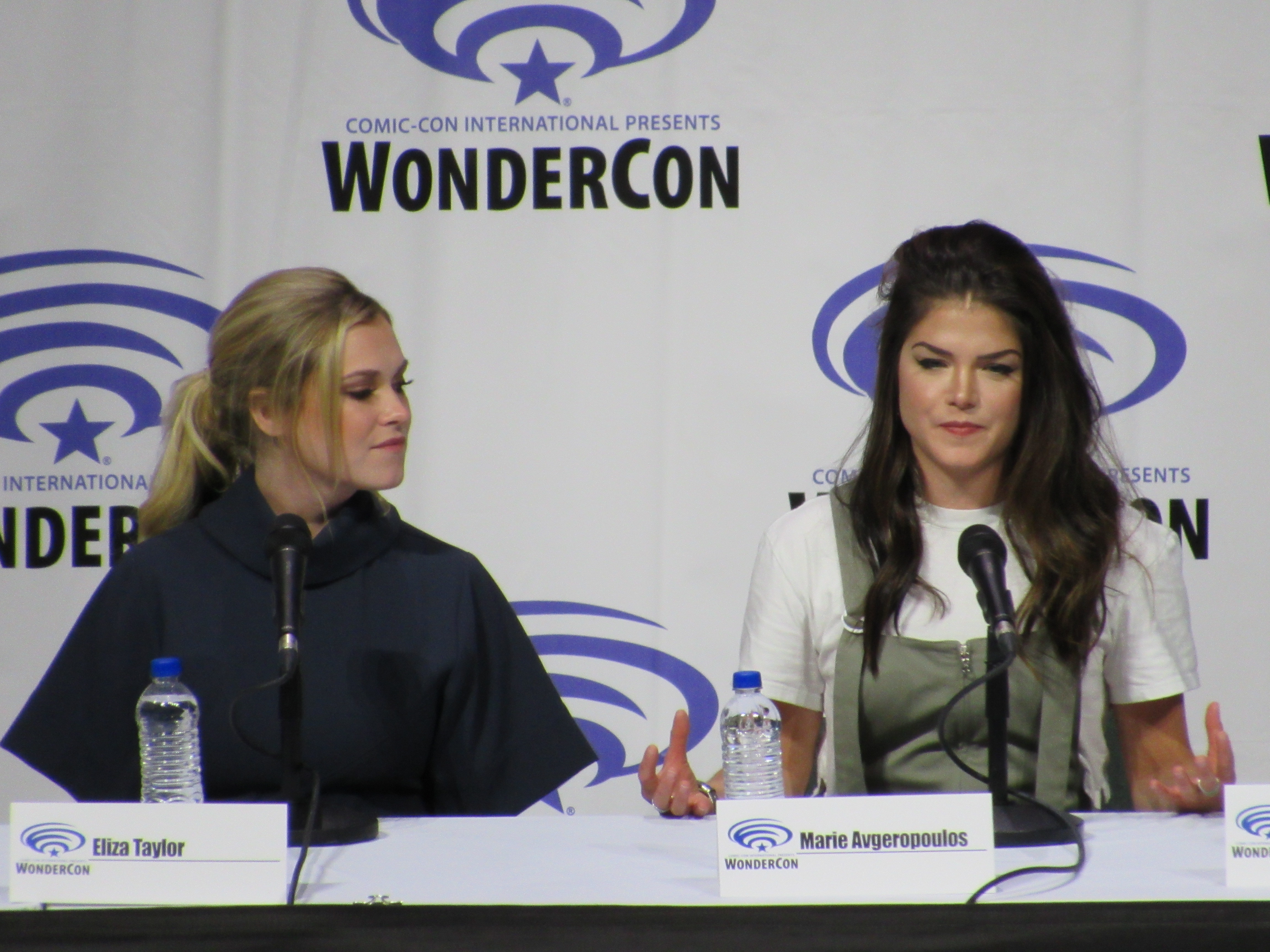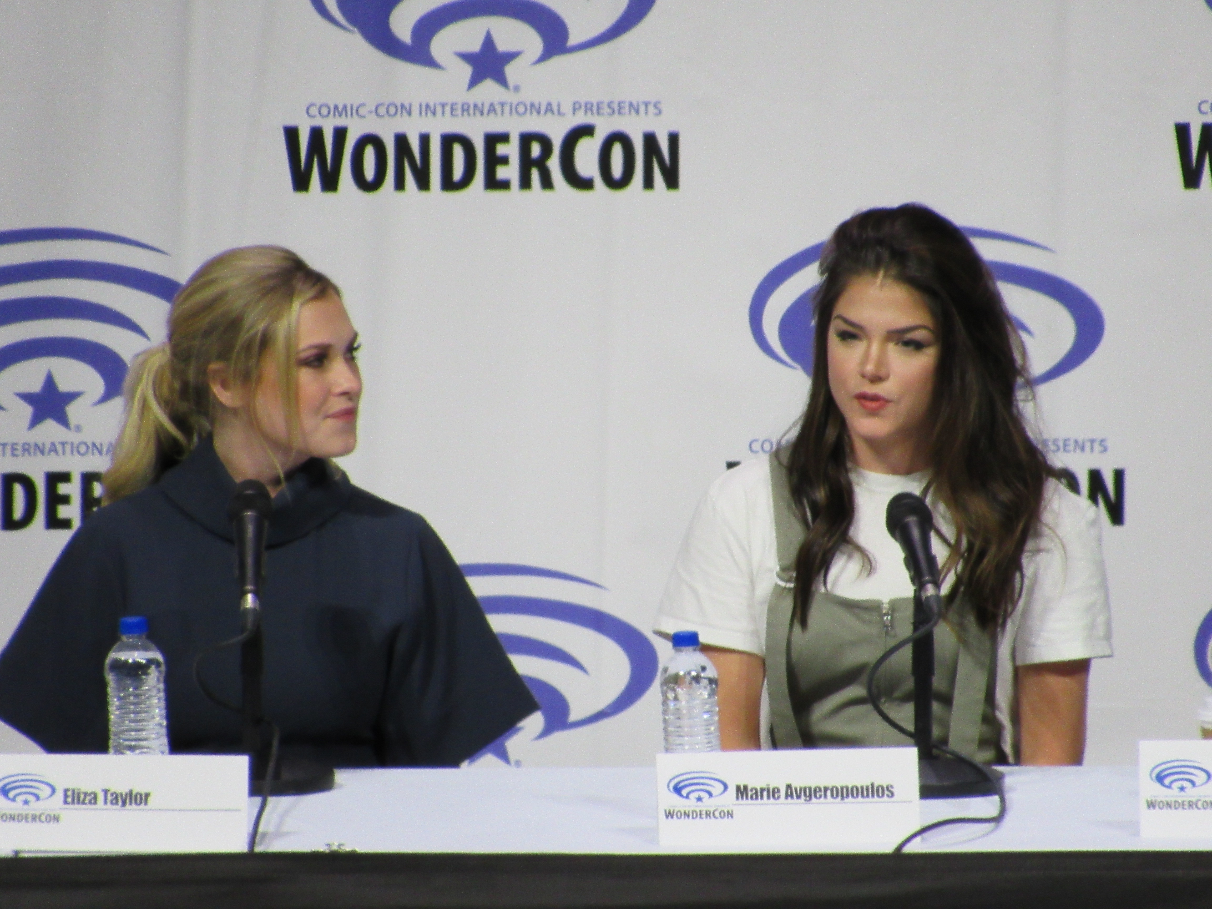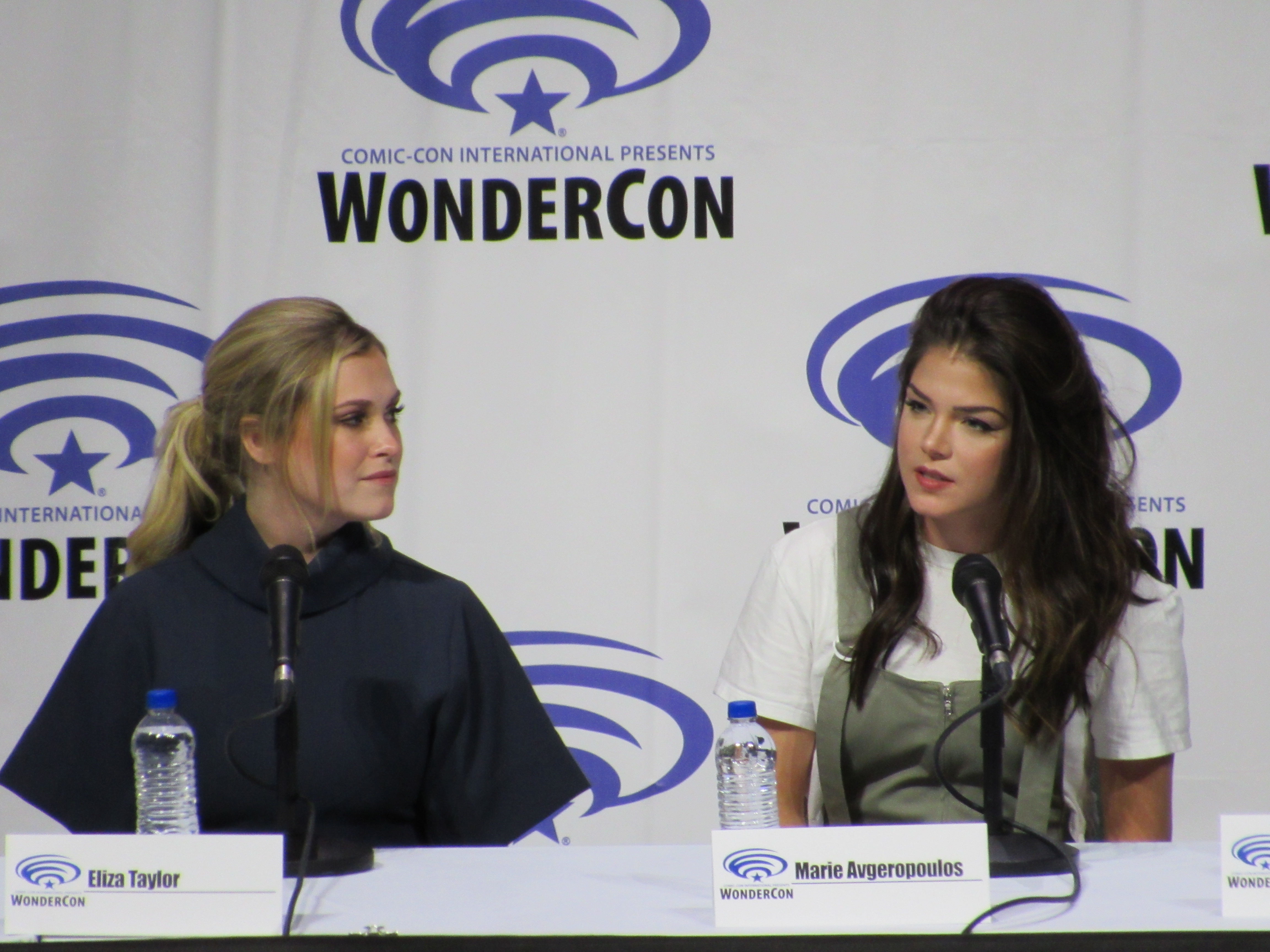After the episode, the panelists came out on stage, which included showrunner Jason Rothenberg and actors Tasya Teles (Echo), Richard Harmon (Murphy), Eliza Taylor (Clarke), Marie Avgeropoulos (Octavia), Shannon Kook (Jordan), JR Bourne (Russell), and Sachin Sahel (Jackson). Bob Morley (Bellamy) had been originally scheduled to attend the panel, but apparently couldn’t make it, so Sachin, who hadn’t been scheduled to attend, took his place. Bob Morley’s absence was a bit of a disappointment for me, as last year Eliza Taylor hadn’t been able to make it to the WonderCon panel, and I haven’t seen the two of them together on a panel since WonderCon 2016!